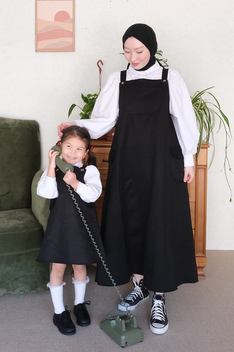 Çocuk Siyah Duck Keten Etekli Salopet