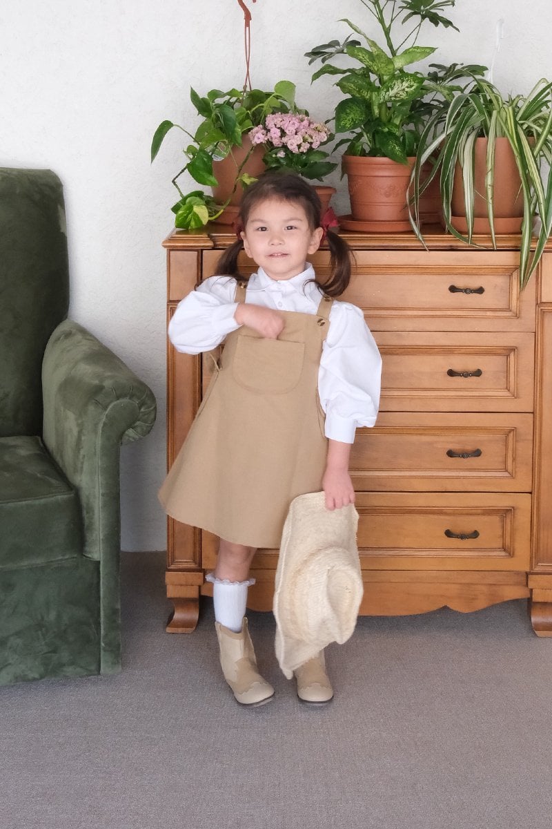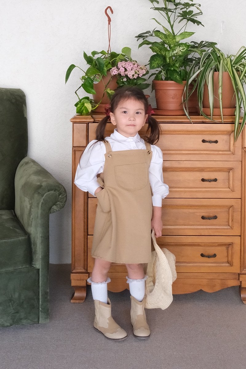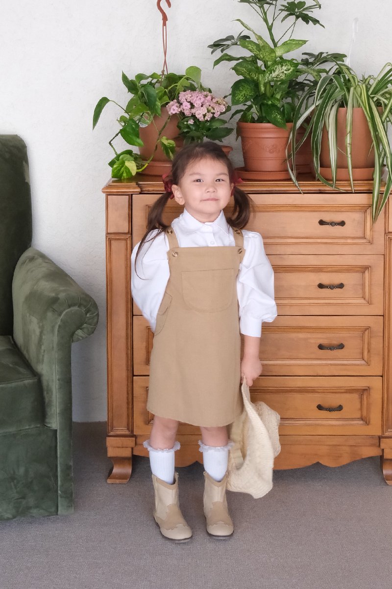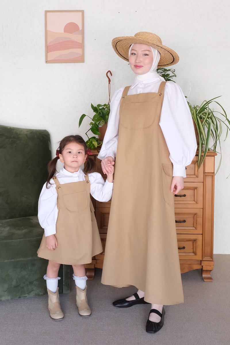 Çocuk Sütlü Kahve Duck Keten Etekli Salopet