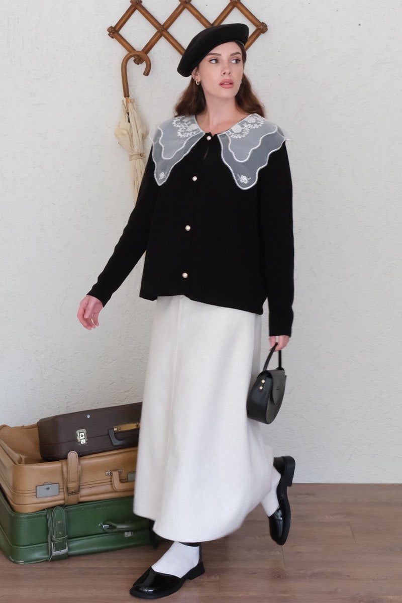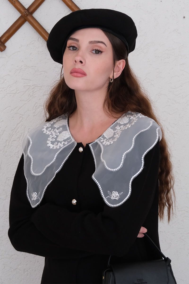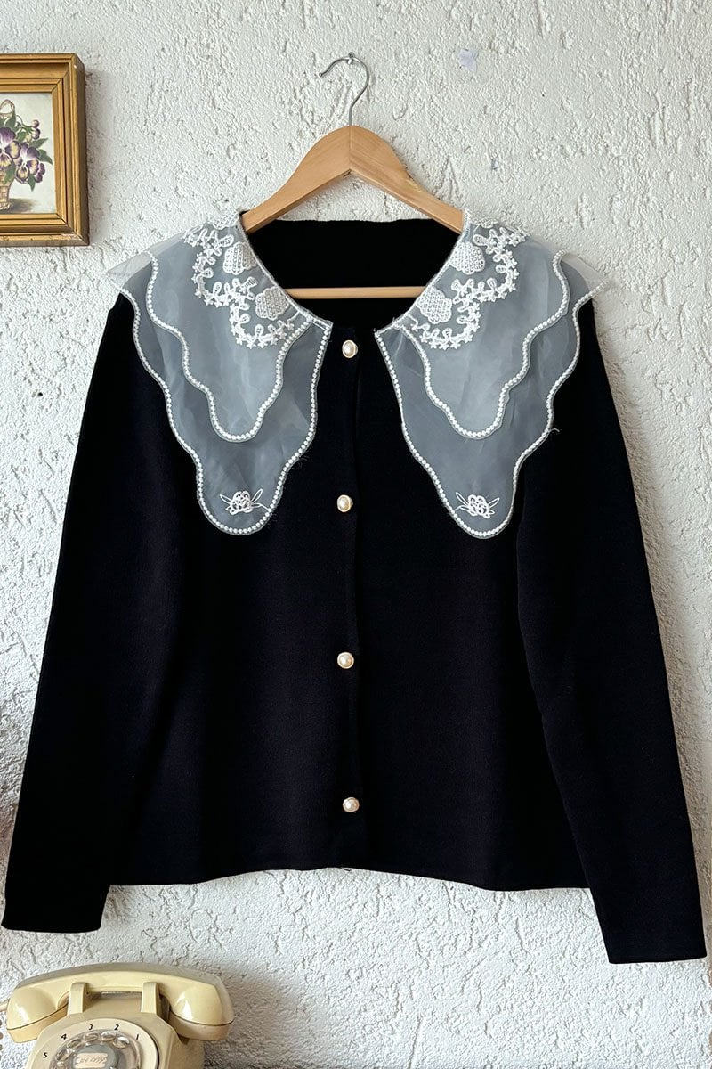 Dantel Yakalı Siyah Triko Hırka