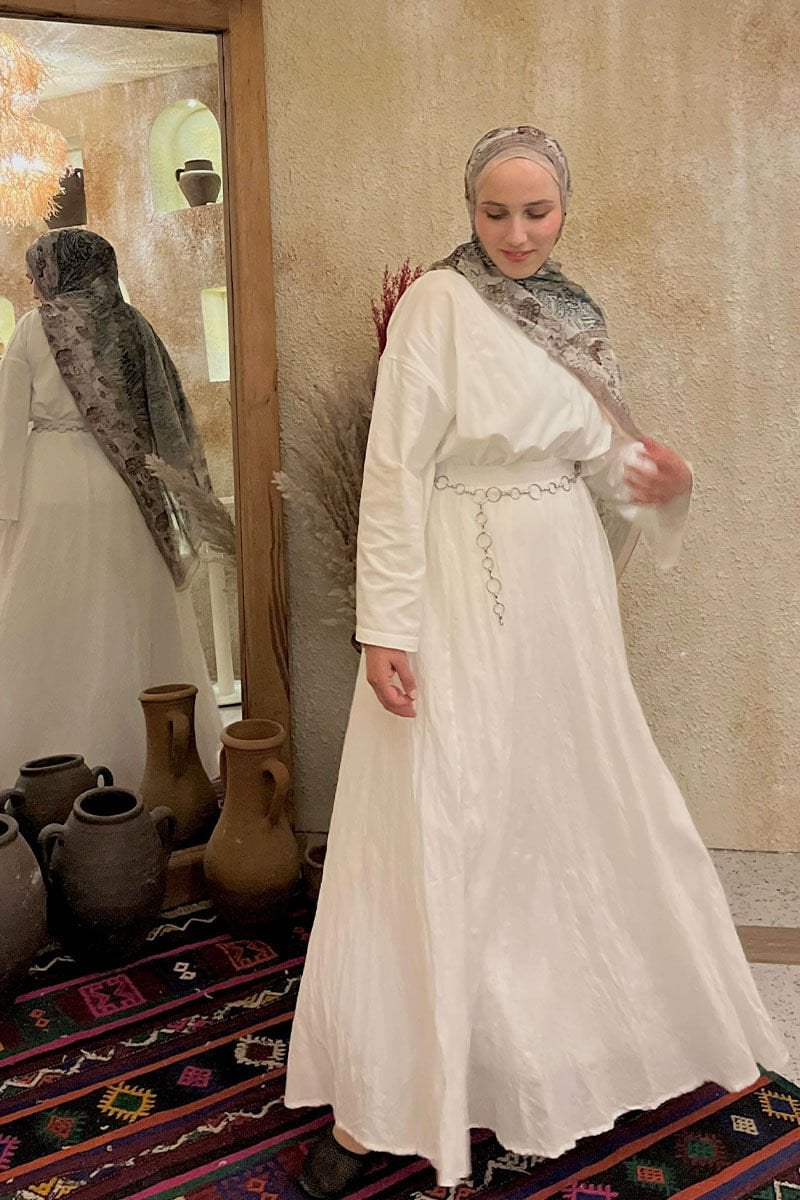 Ekru Body & Beyaz Kraşlı Balon Etek Takım