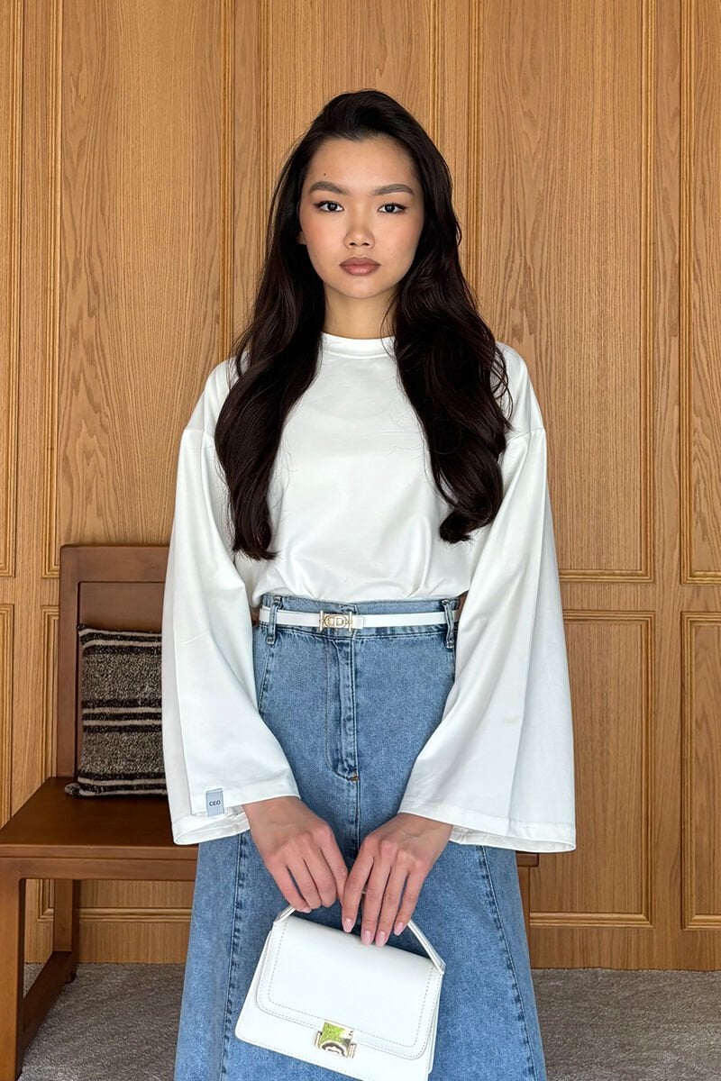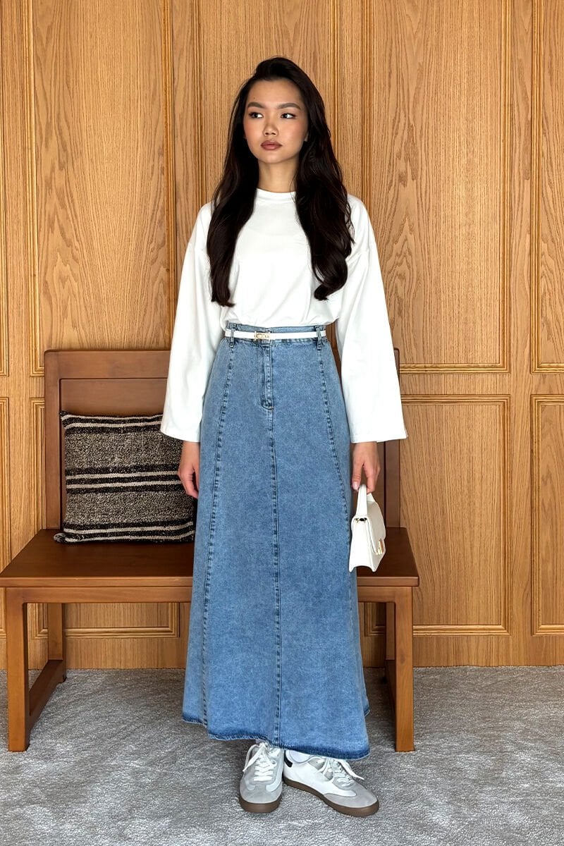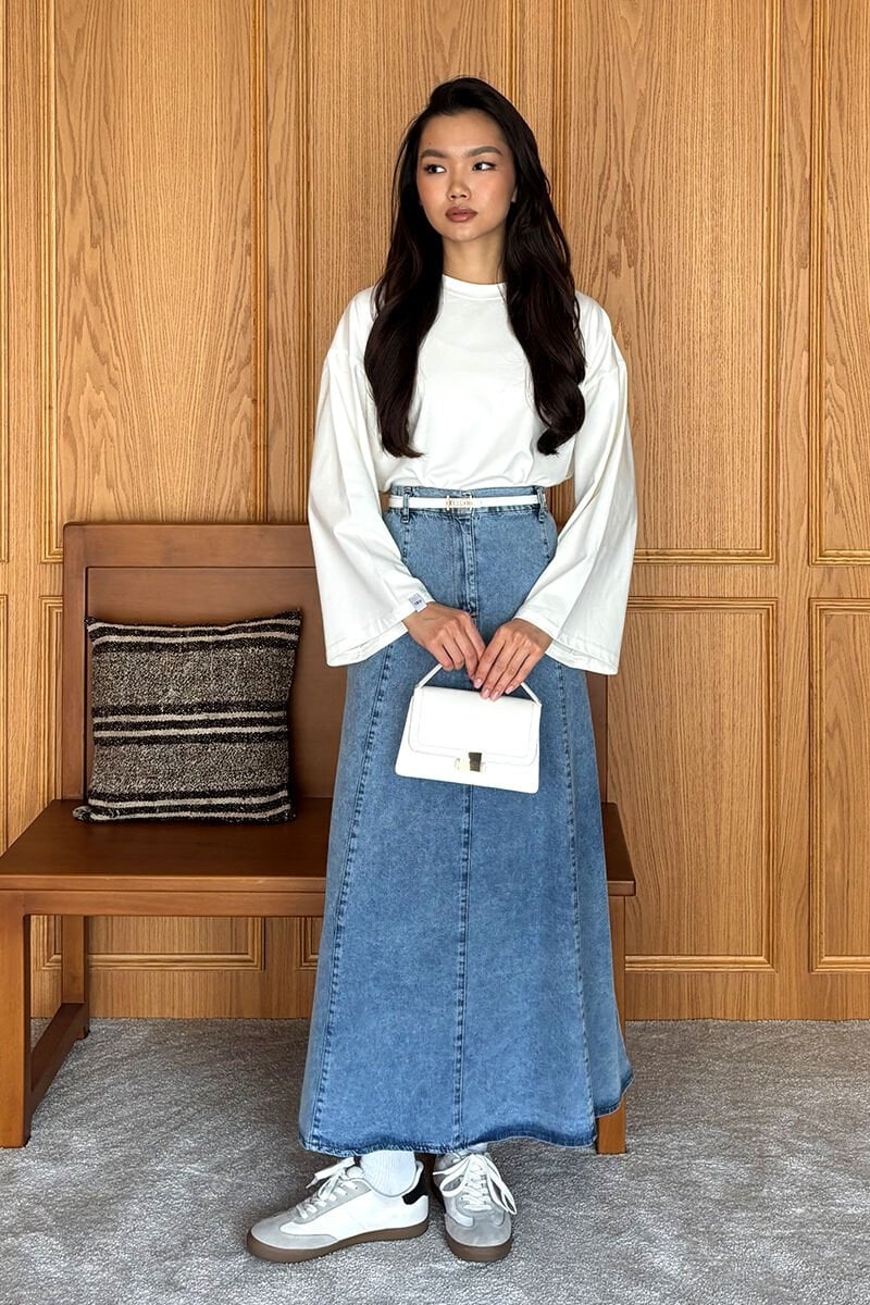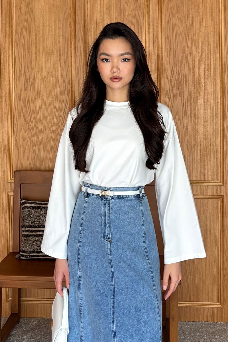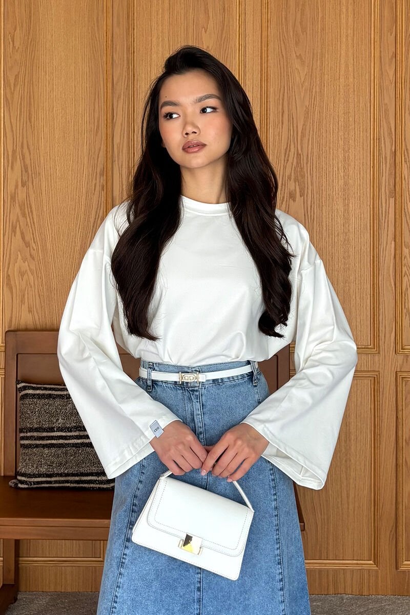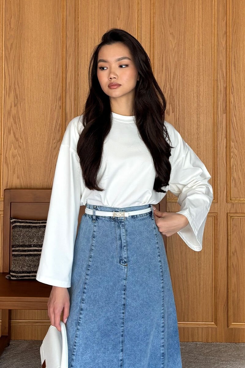 Ekru Body & Buz Mavisi Kot Kloş Etek Takım
