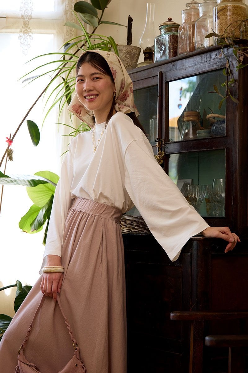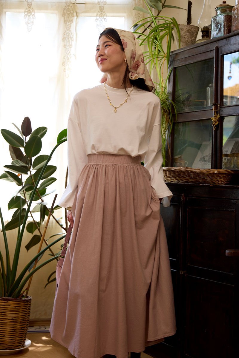 Ekru Body & Gül Kurusu Organik Keten Balon Etek Takım