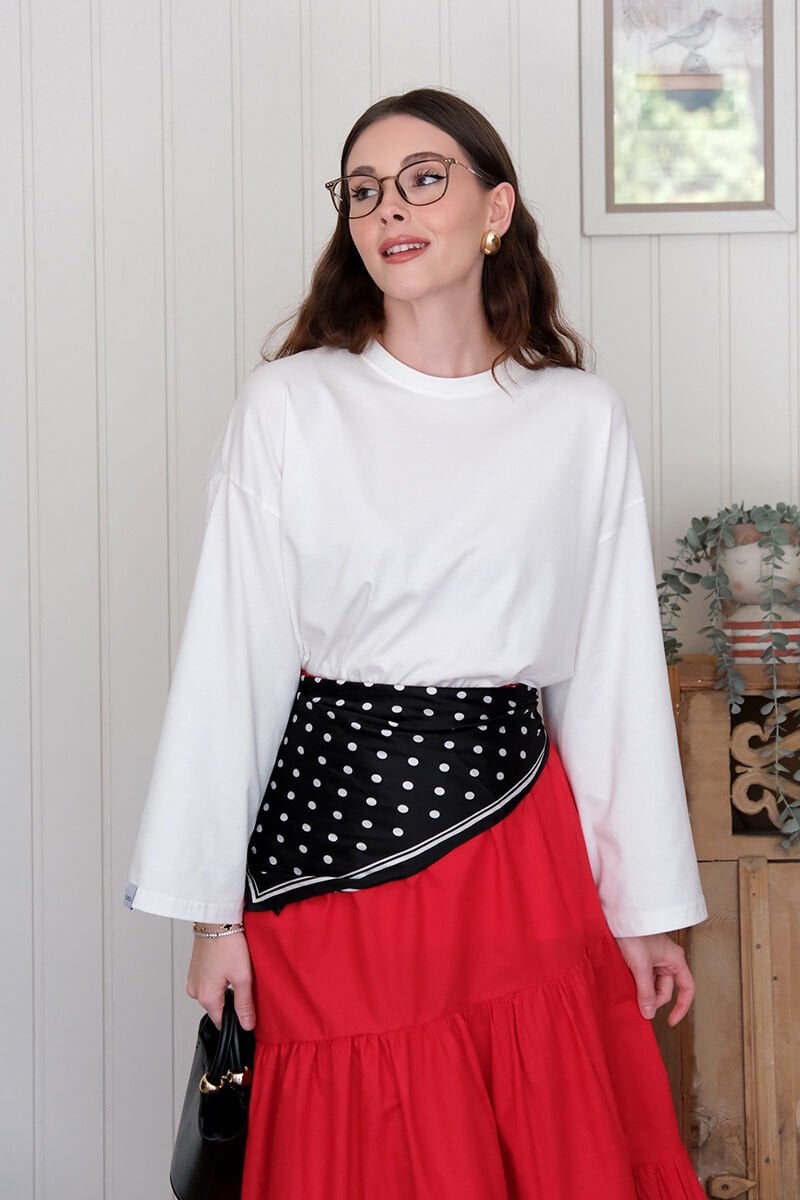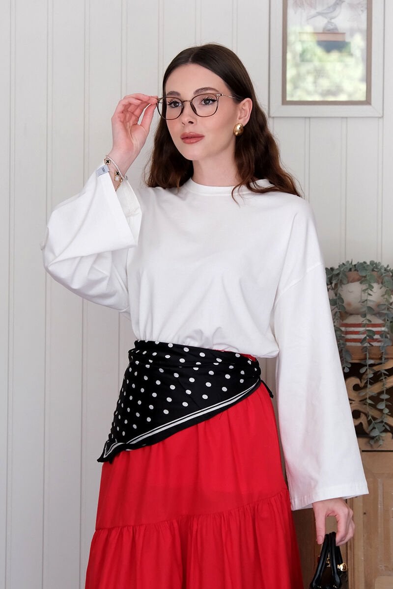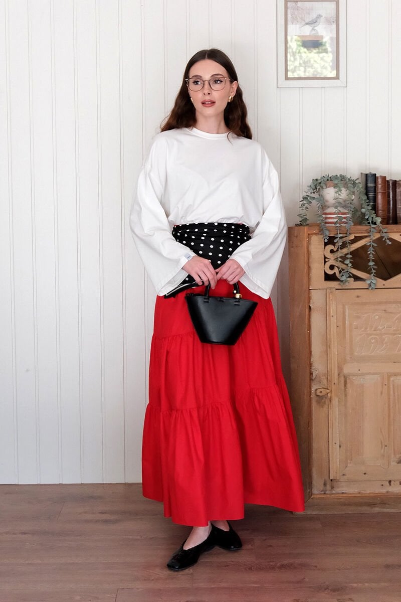 Ekru Body & Kırmızı Çapraz Kat Etek Takım
