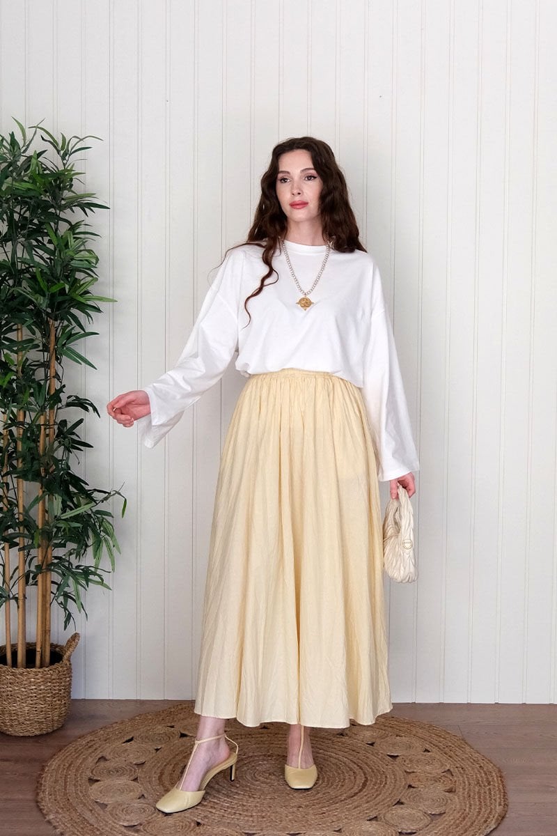 Ekru Body & Tereyağ Sarısı Kraşlı Balon Etek Takım
