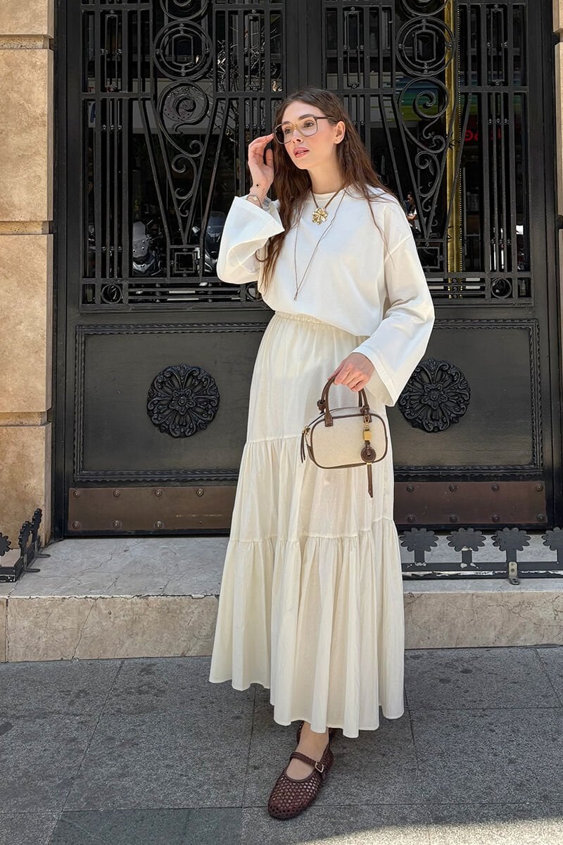 Ekru Çapraz Kat Etek Ceylan Otantik'in seçimi Ekru Çapraz Kat Etek. Vintage ve tesettür kadın giyim şıklığı uygun fiyatlı parçalarla Etek Koleksiyonu'nda! CEO000000416