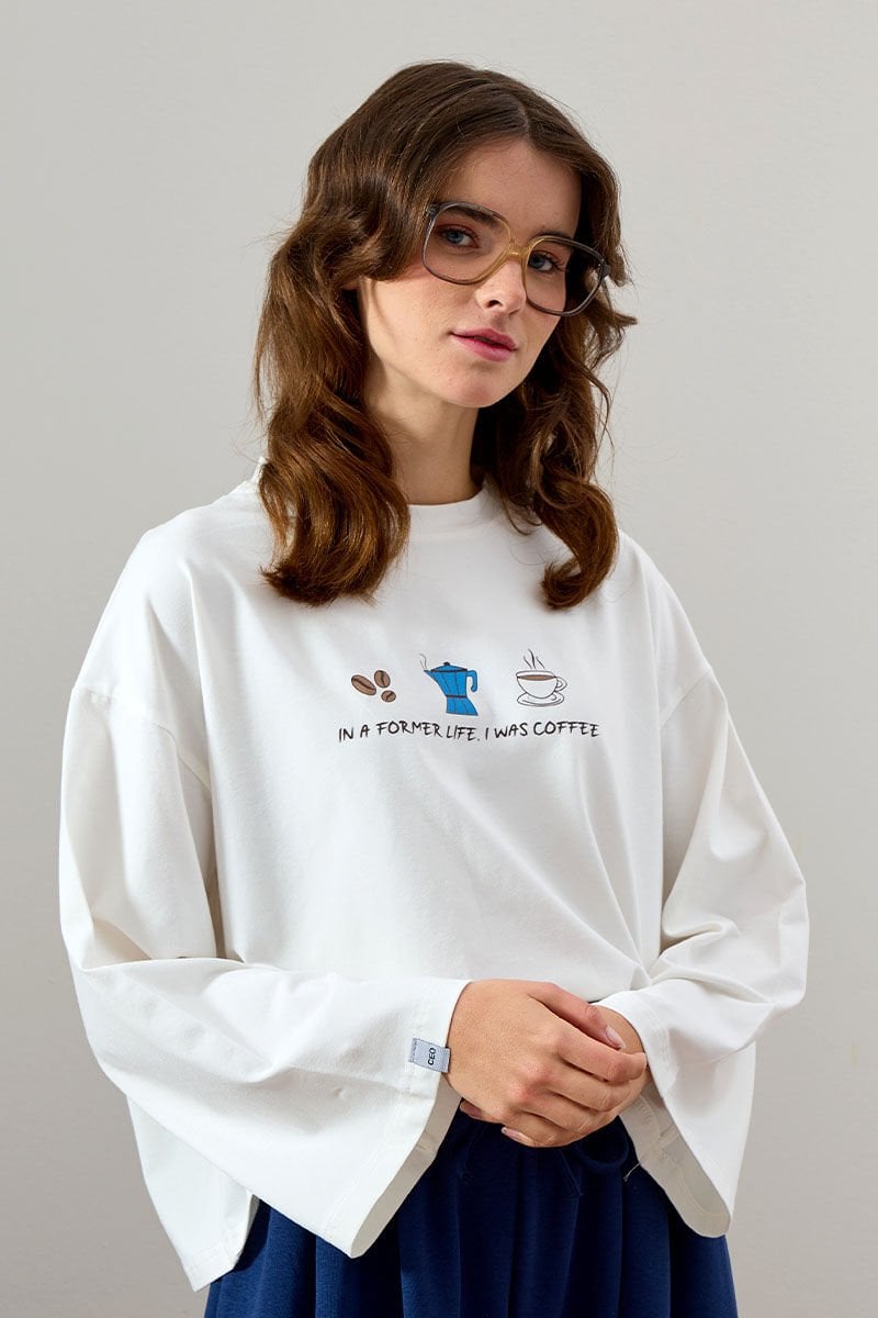 Ekru Coffee Baskılı Basic Body