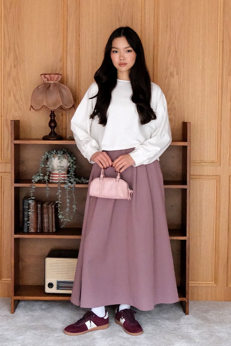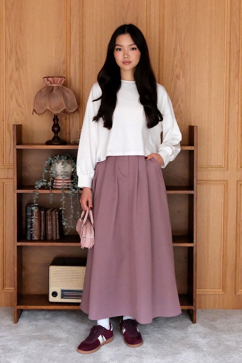 Ekru Crop & Soft Lila Keten Tek Düğmeli Etek Takım