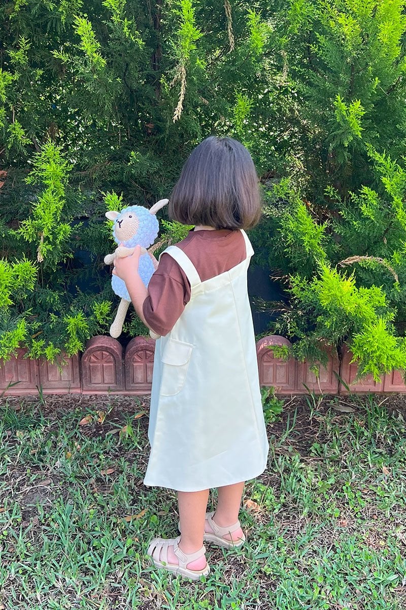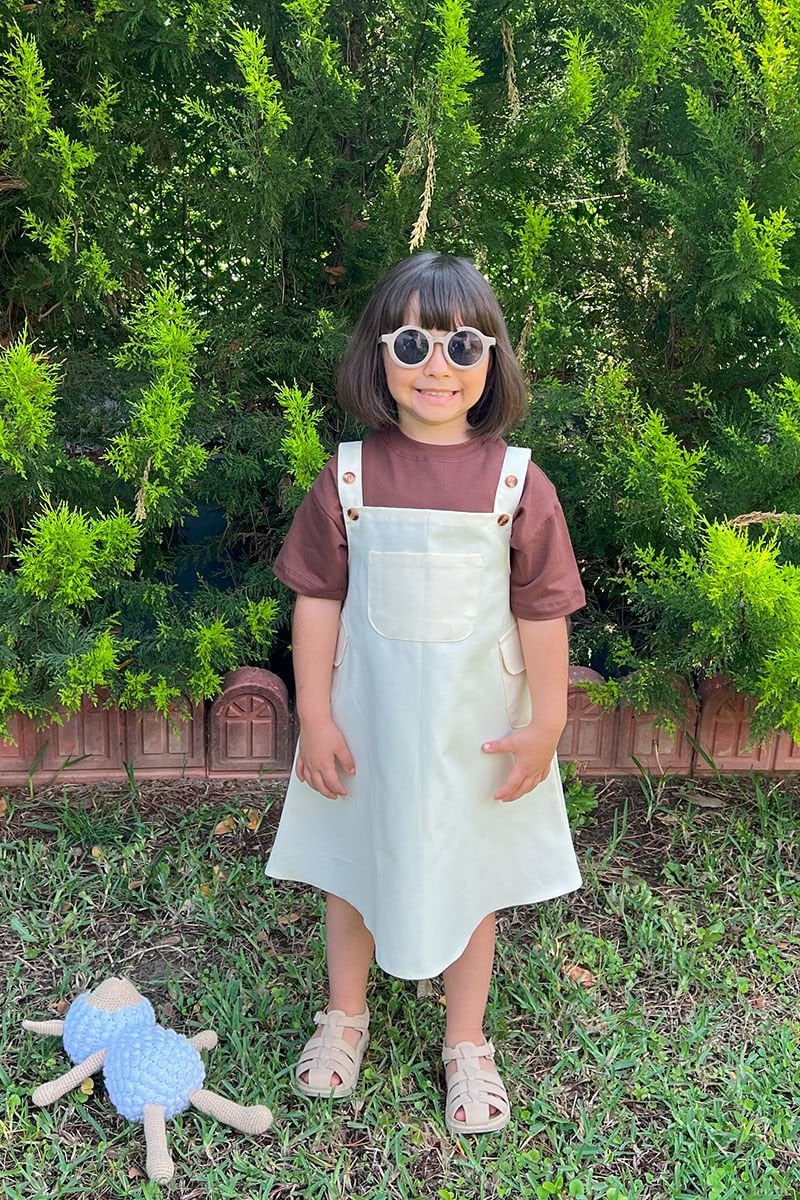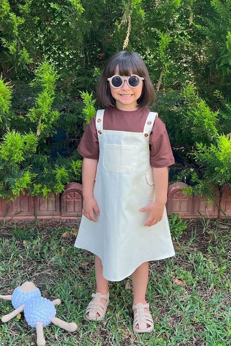 Tereyağ Sarısı Duck Keten Çocuk Etekli Salopet