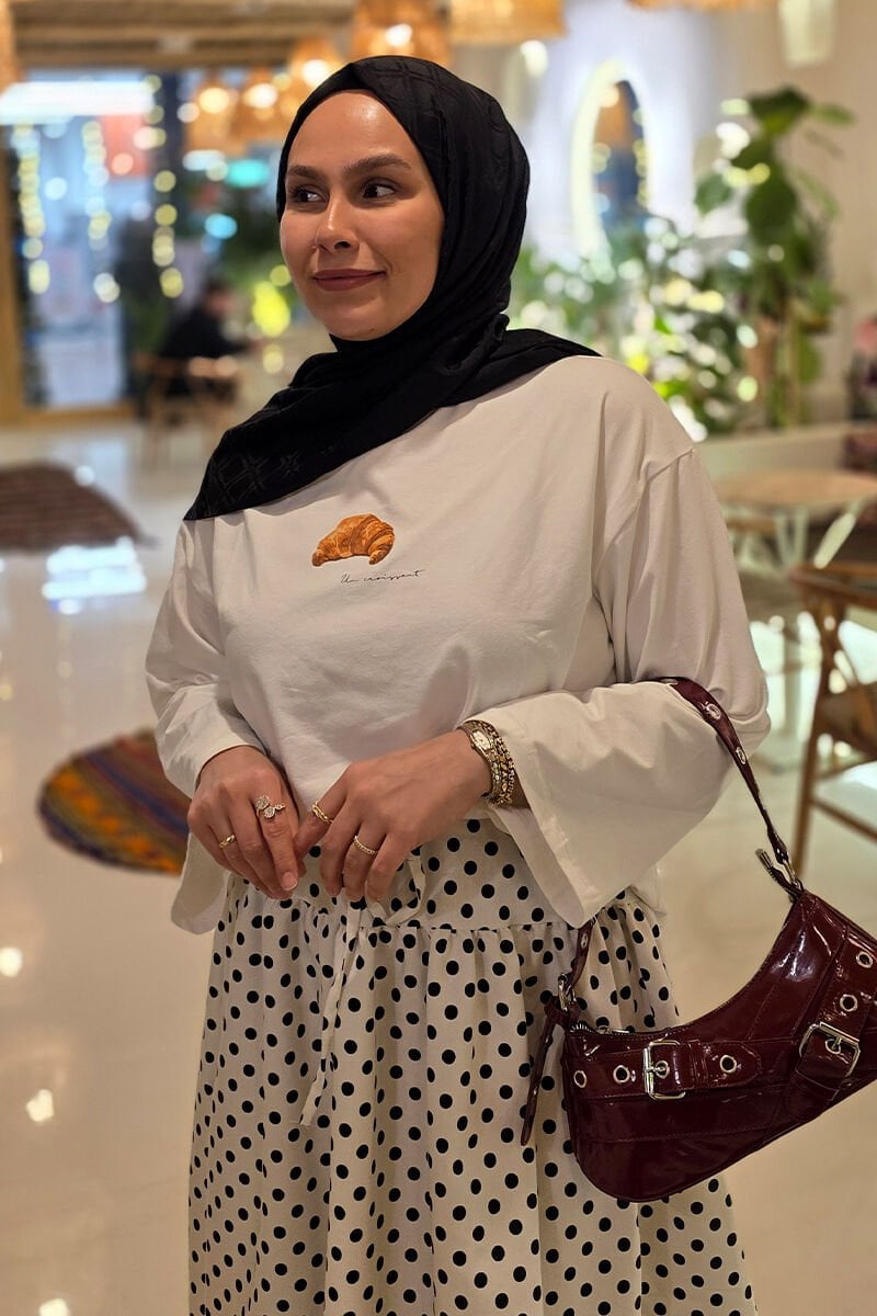 Ekru Kruvasan Baskılı Basic Body
