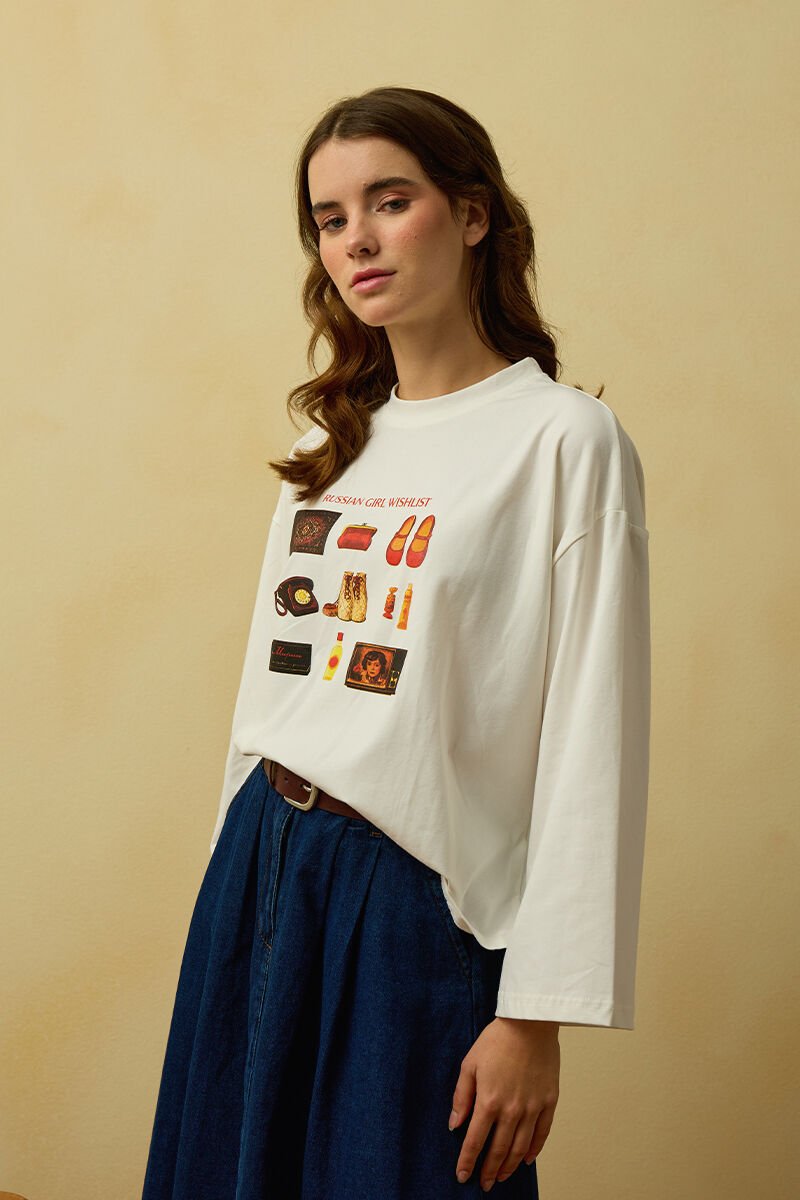 Ekru Otantik Baskılı Basic Body