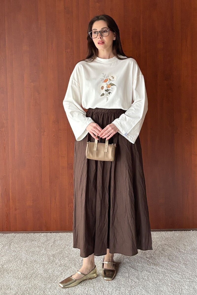 Ekru Papatya Baskılı Basic Body