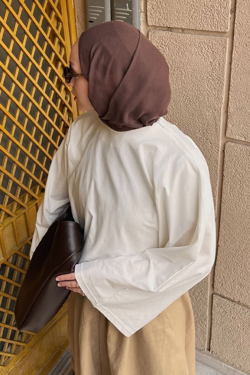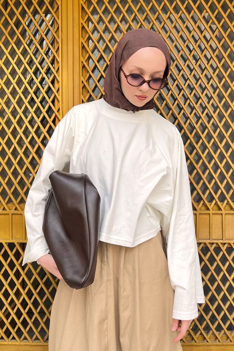 Ekru Süprem Yarasa Kol Crop
