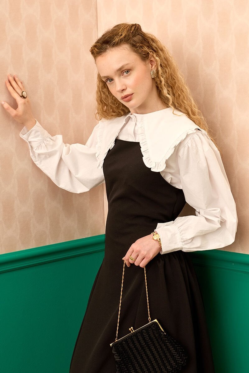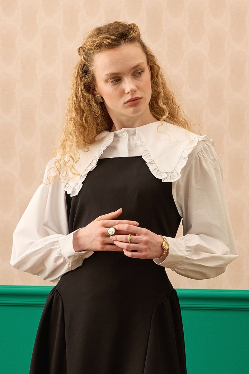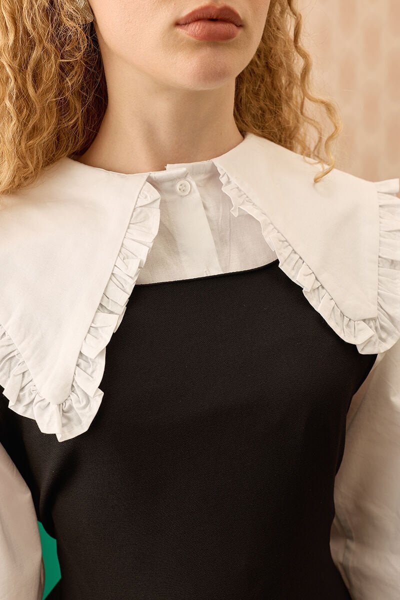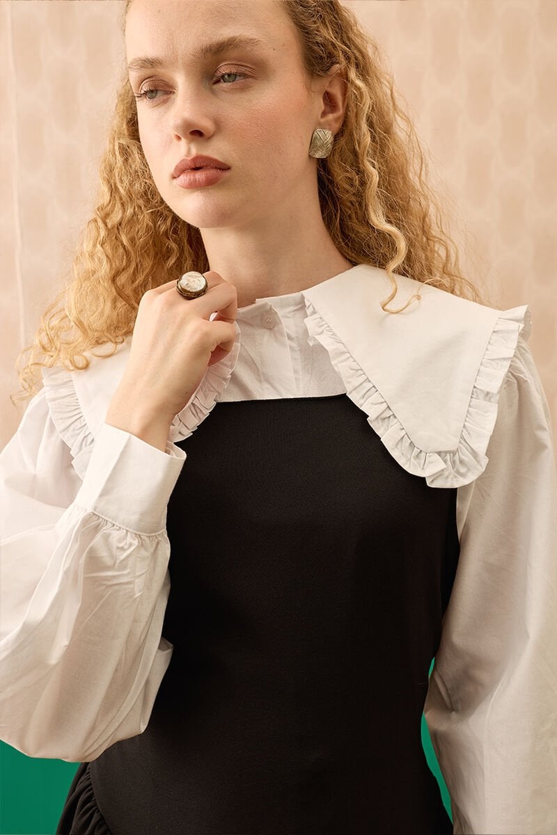 Ekru Yakası Fırfırlı Crop Gömlek