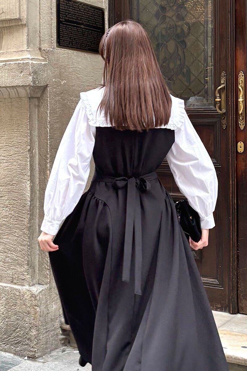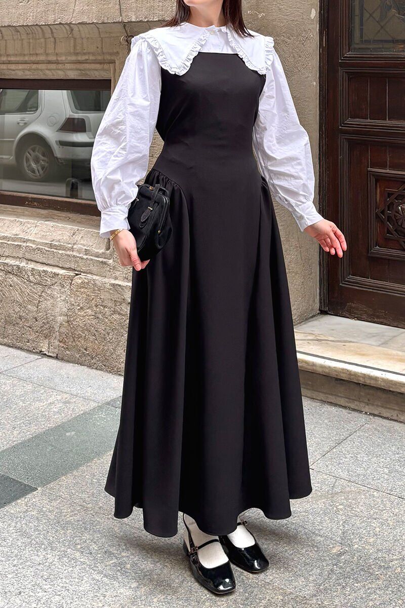 Ekru Yakası Fırfırlı Crop Gömlek & Siyah Krep Korsaj Detay jile Takım