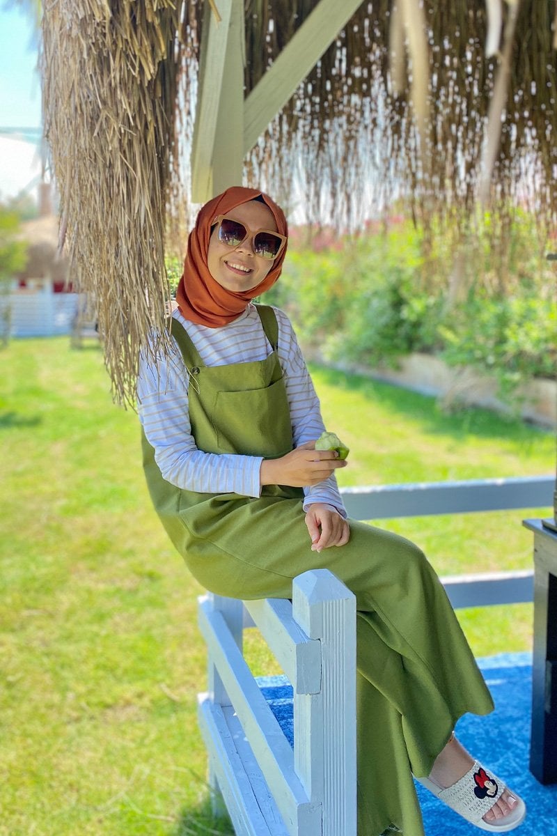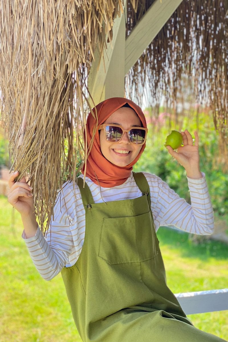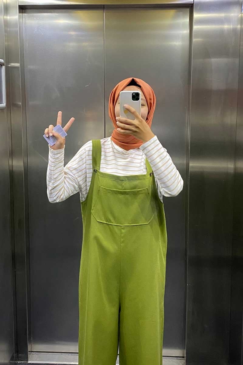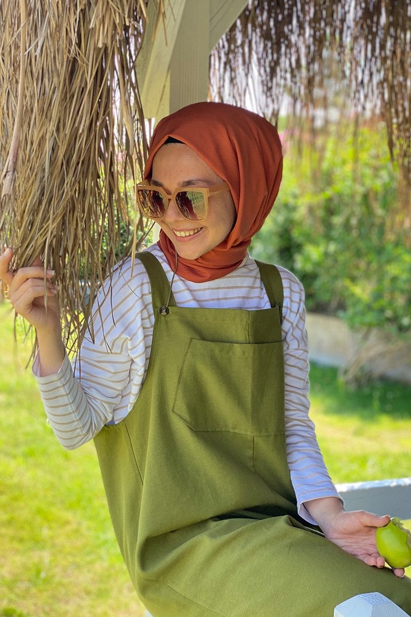 Yağ Yeşili Keten Salopet Tulum / Harmandalı