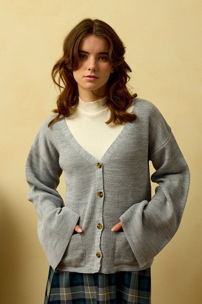Gri İspanyol Kol Triko Hırka