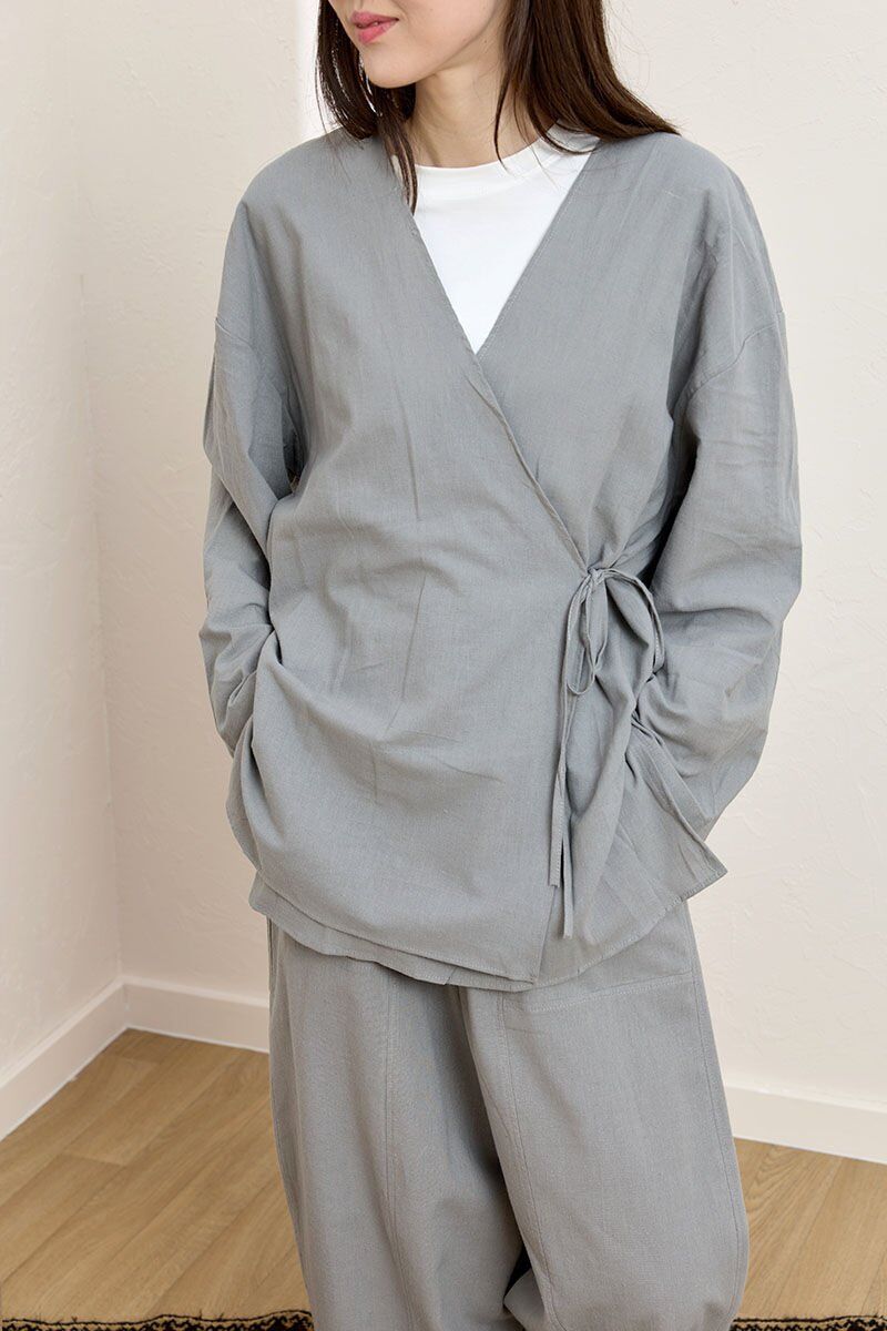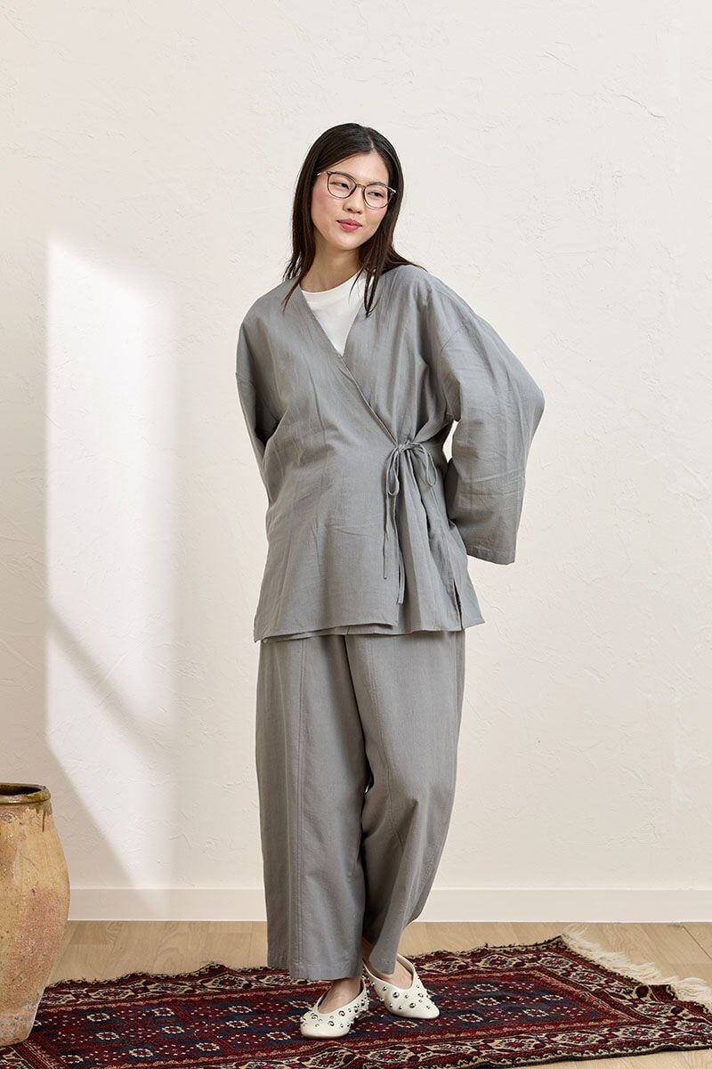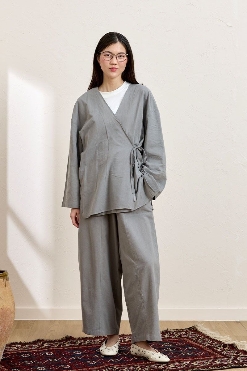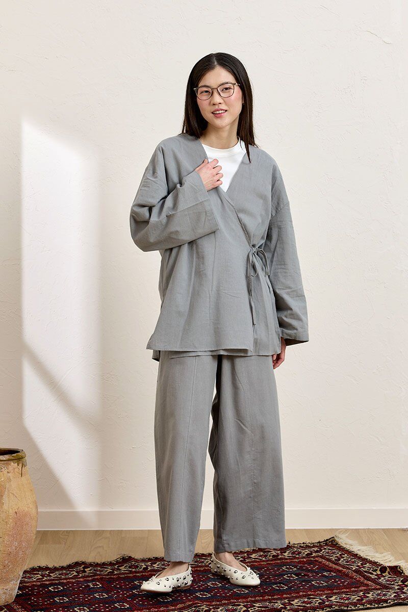 Gri Organik Keten Bağlamalı Tunik