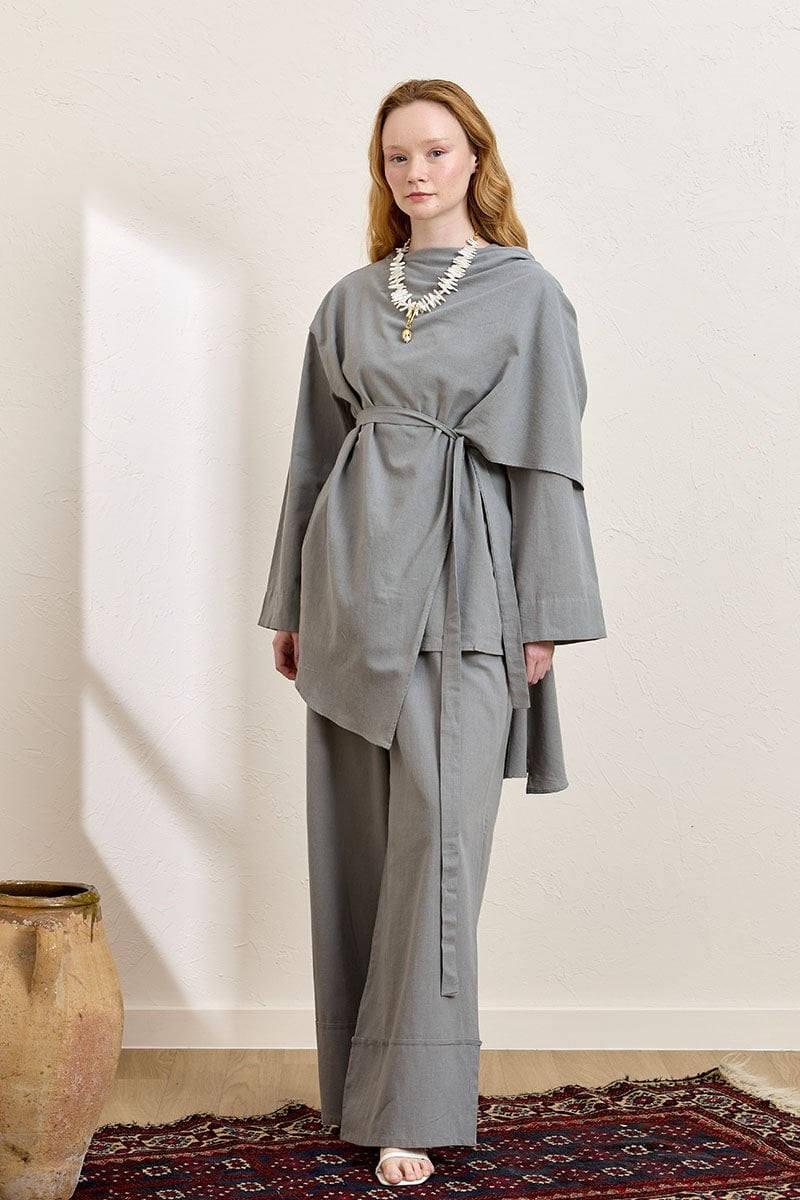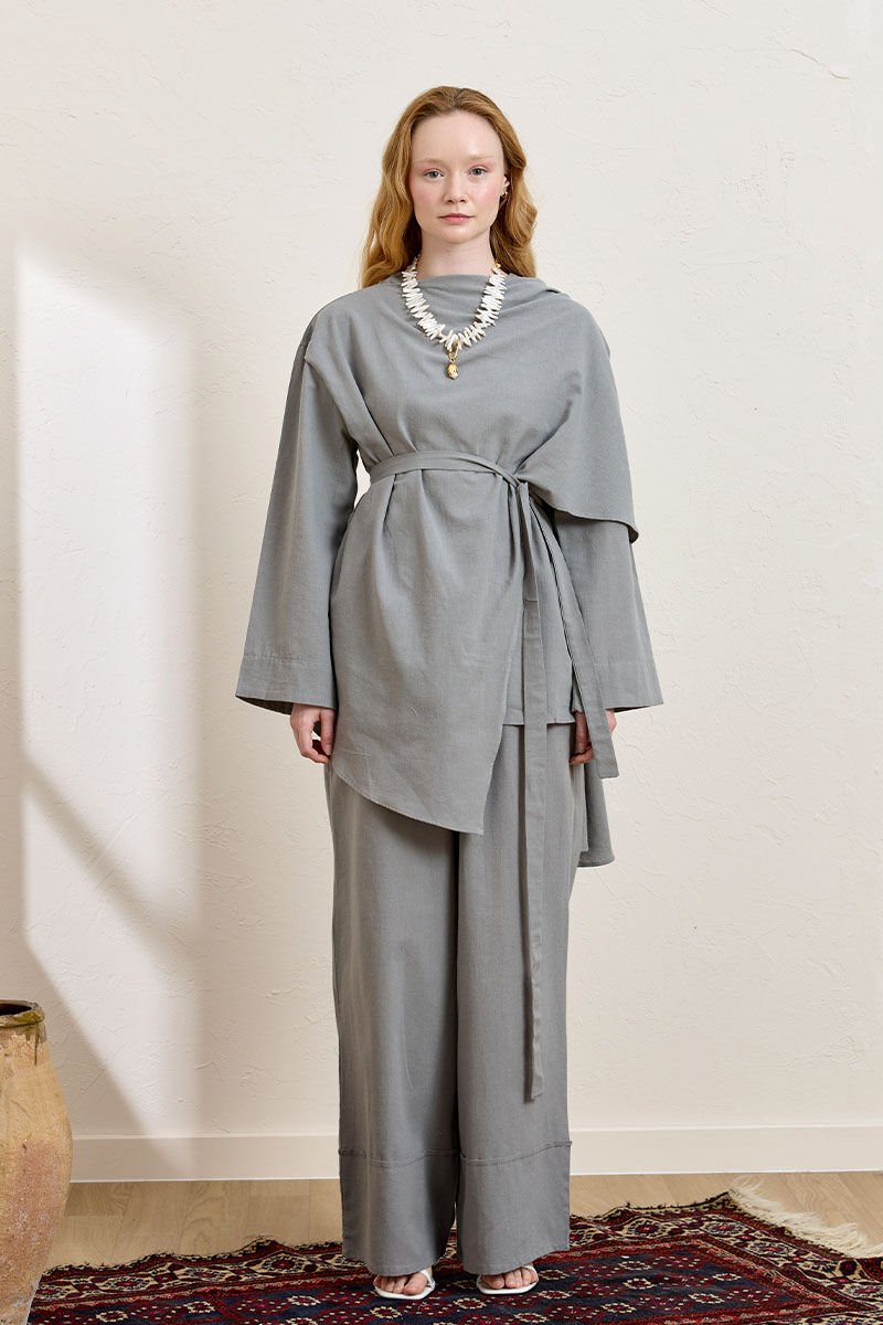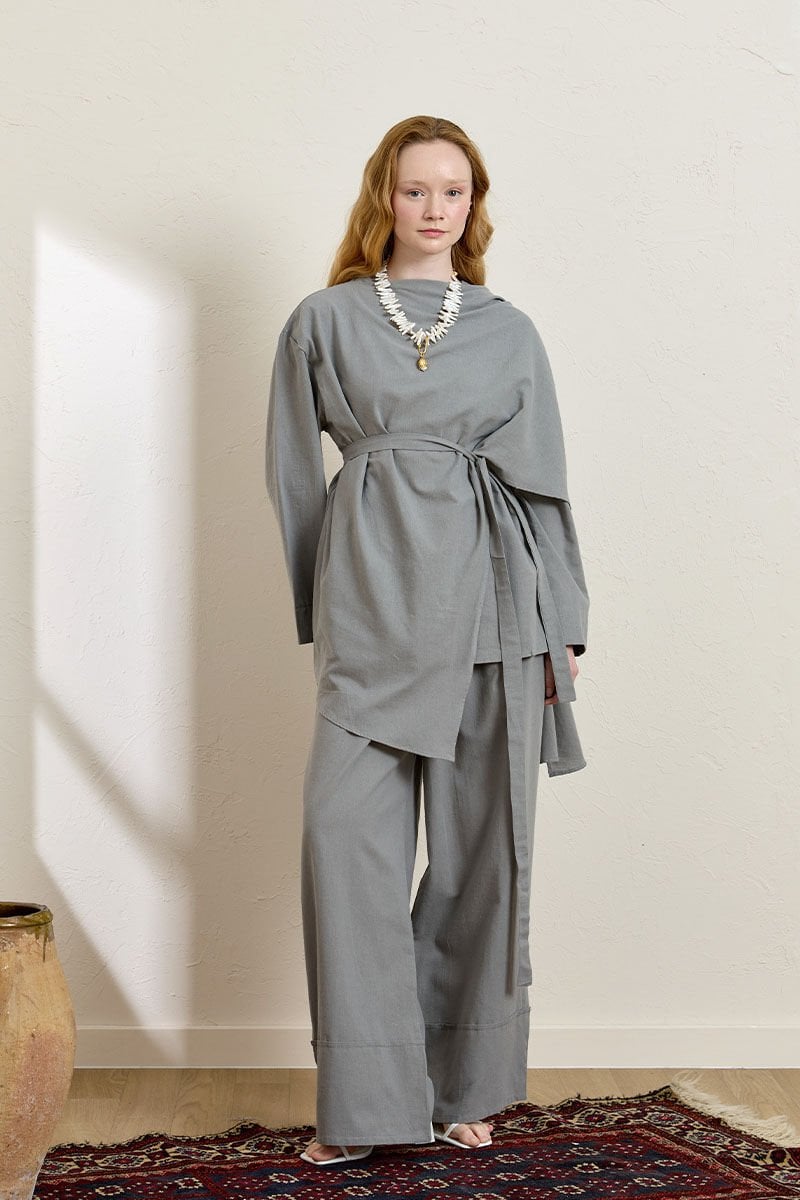 Gri Organik Keten Double Paça Pantolon