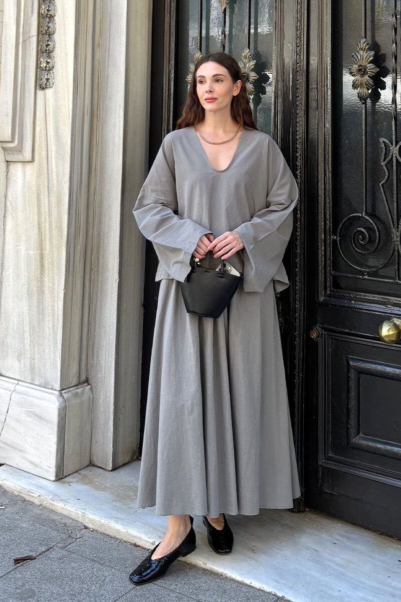 Doğal malzeme kullanılarak üretildiği için cildinize dost olurken, zarif V yakasıyla da şıklığınızı ön plana çıkaracak.