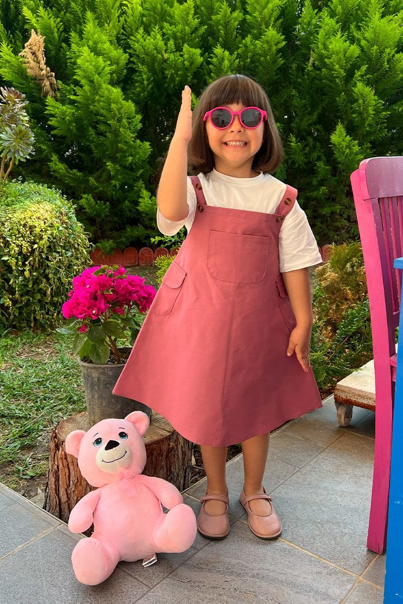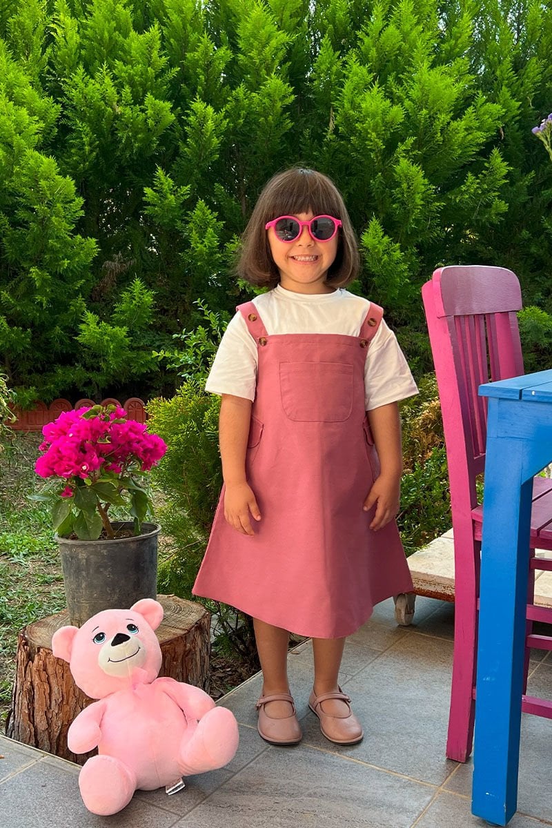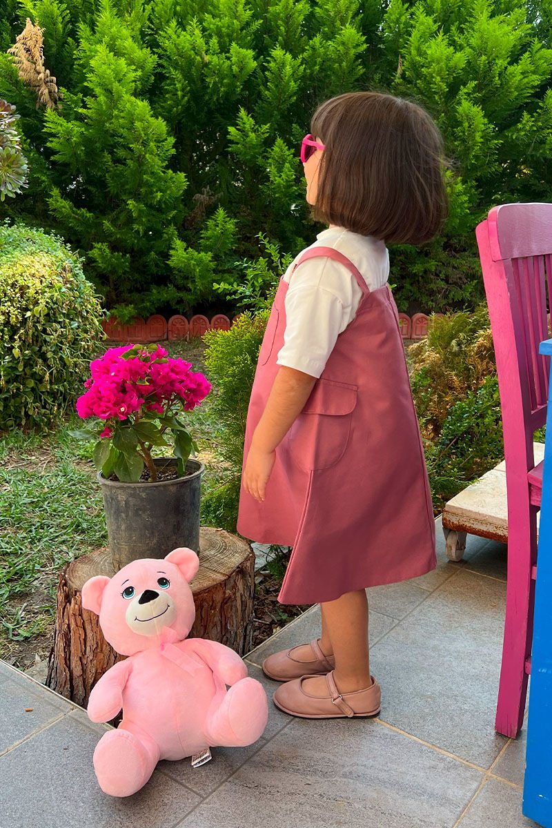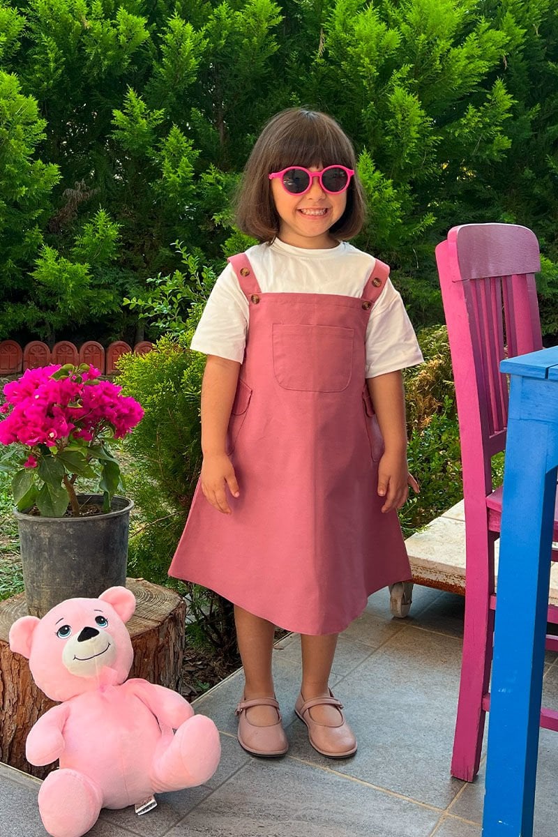 Gül Kurusu Duck Keten Çocuk Etekli Salopet