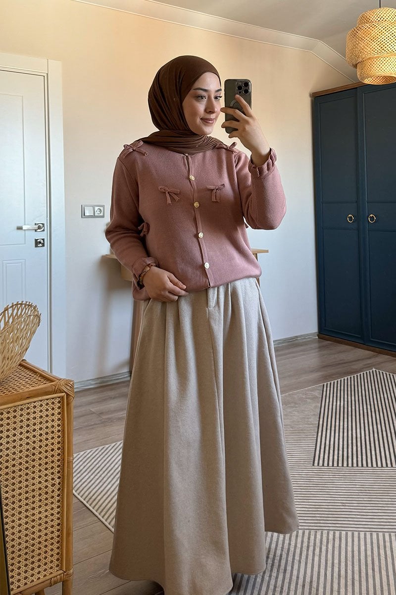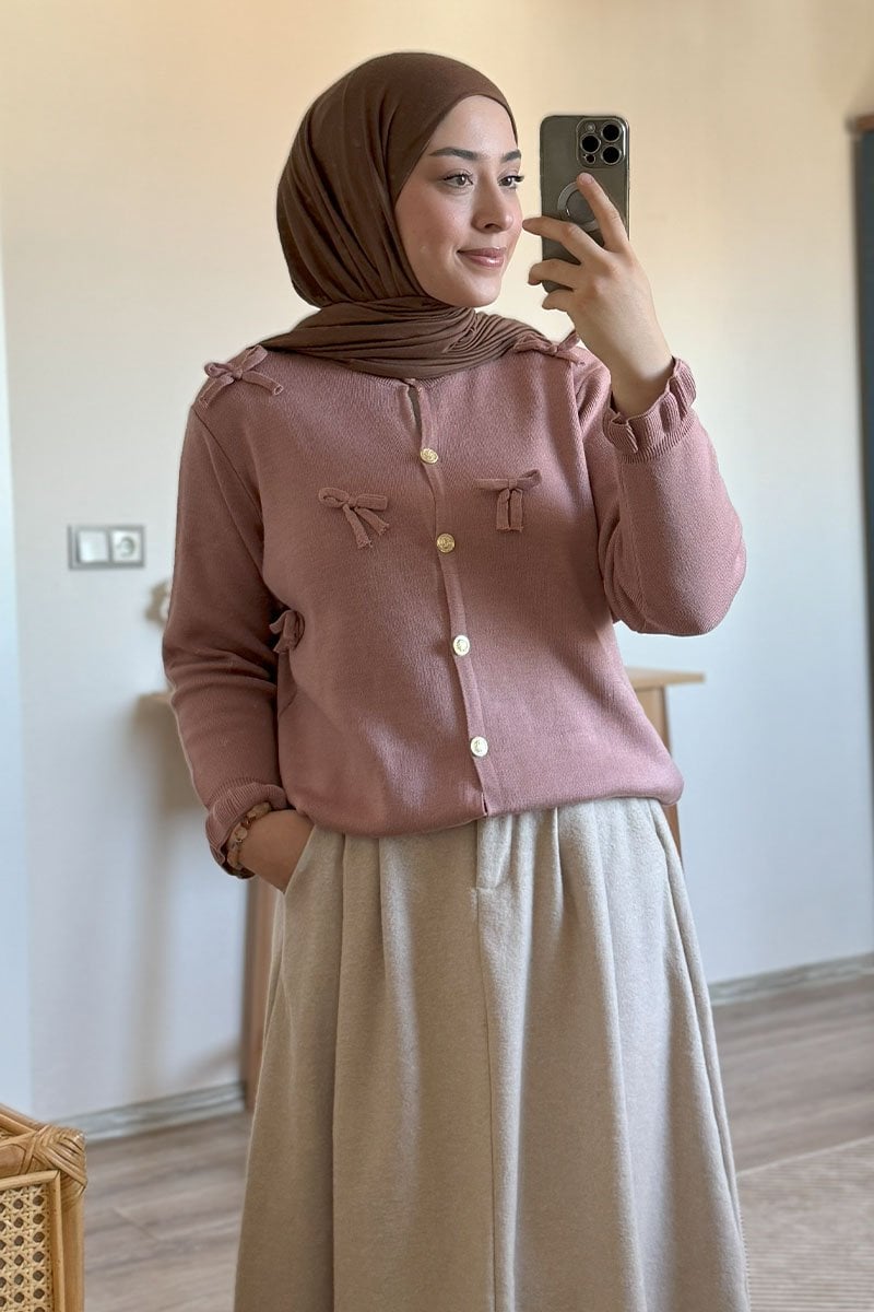 Gül Kurusu Fiyonklu Hırka / Fadiku