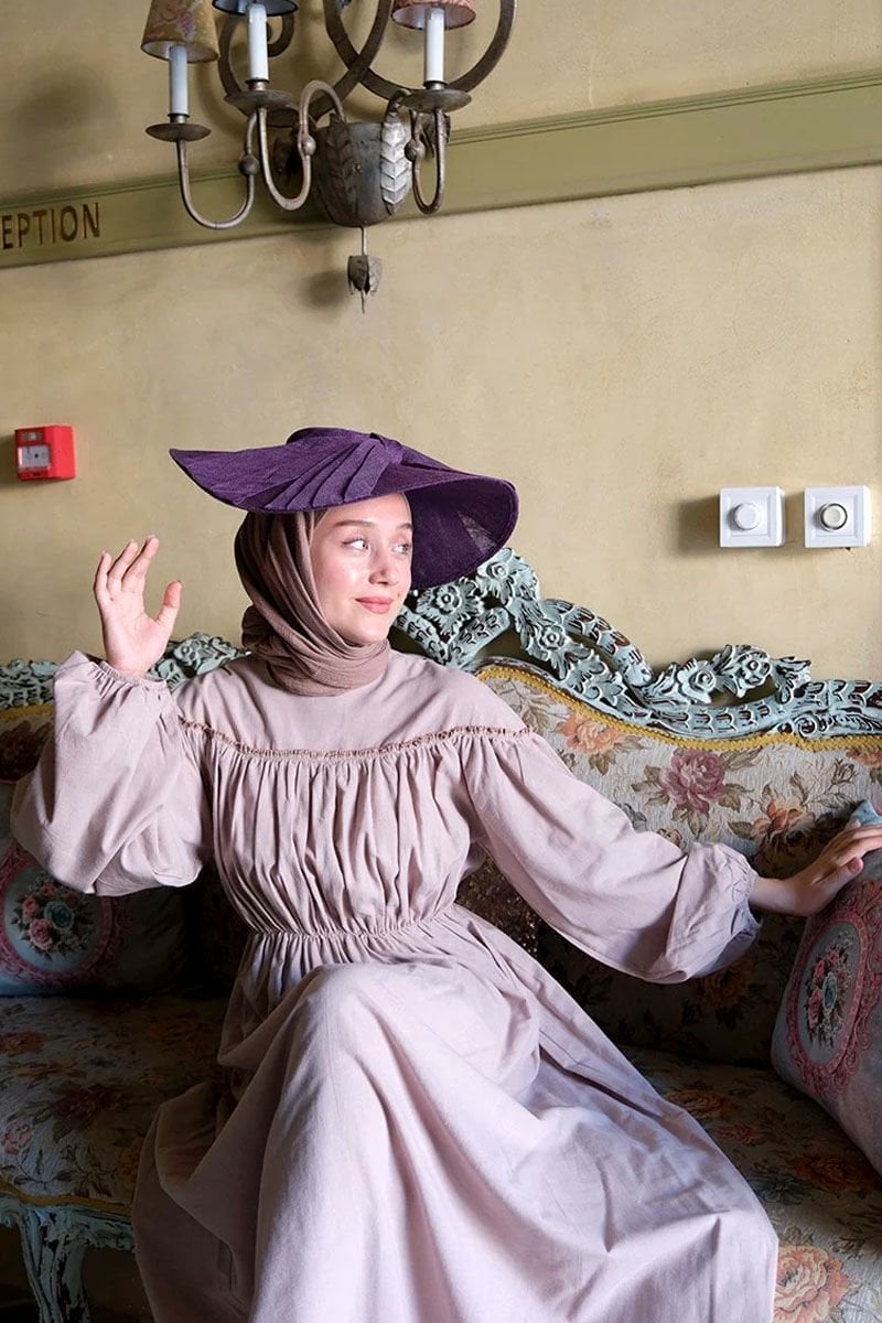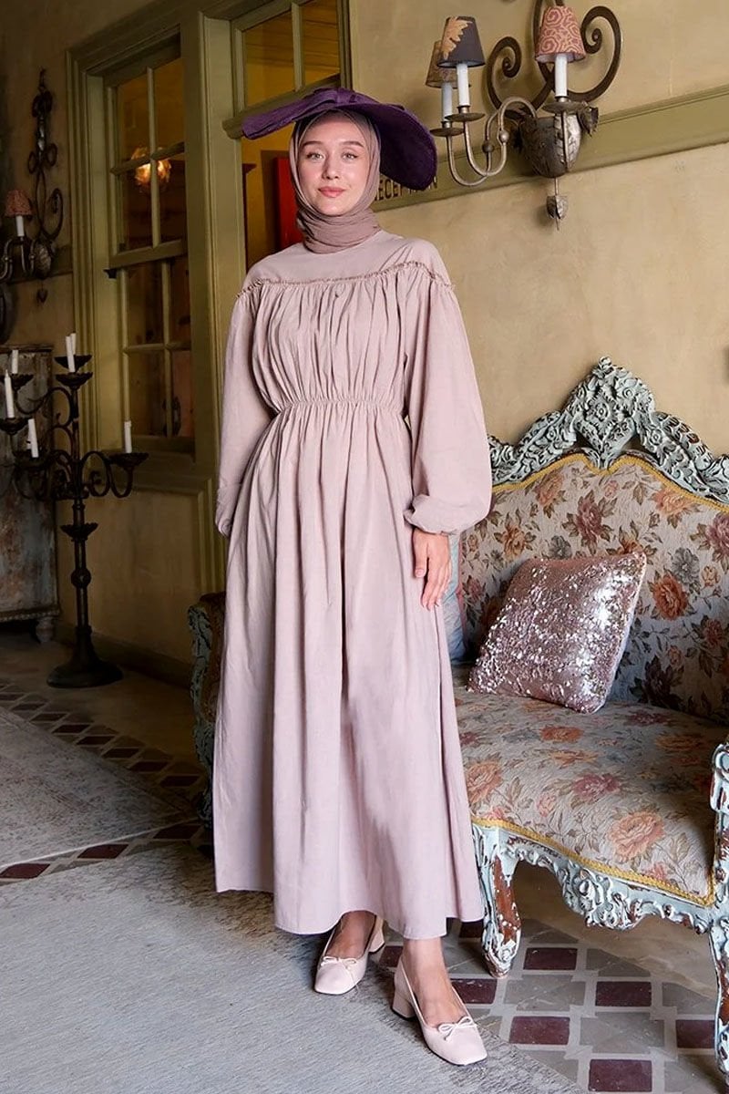 Gül Kurusu Organik Keten Büzgülü Elbise