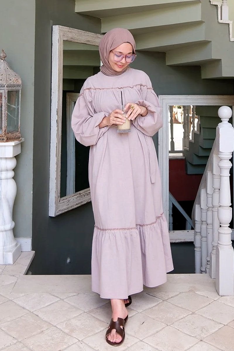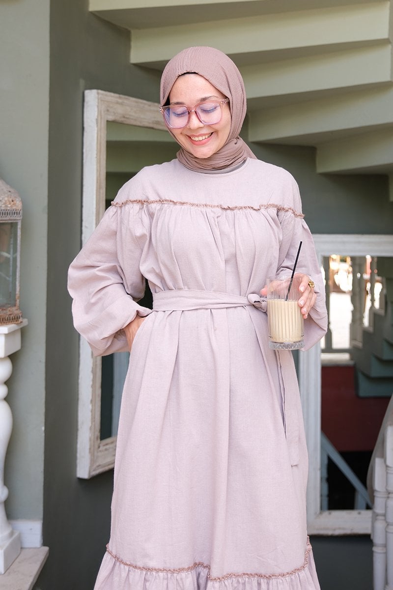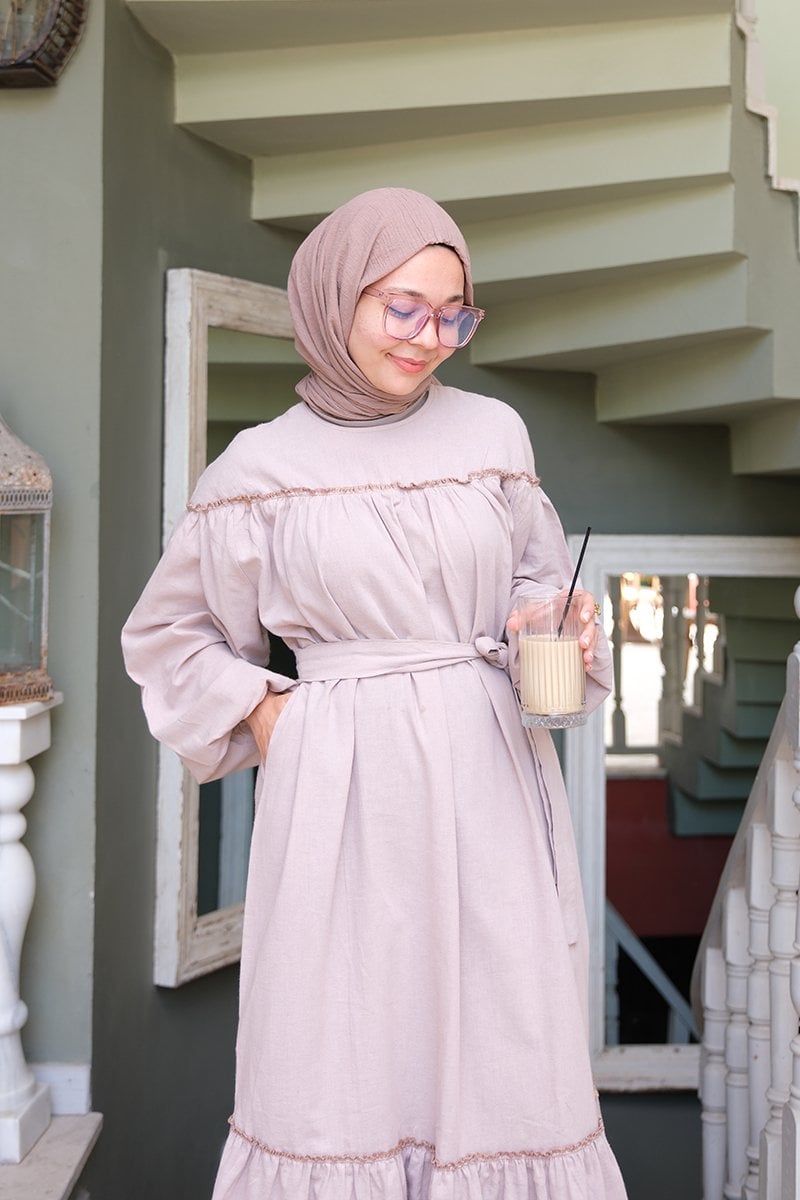 Gül Kurusu Organik Keten Eteği Fırfırlı Elbise