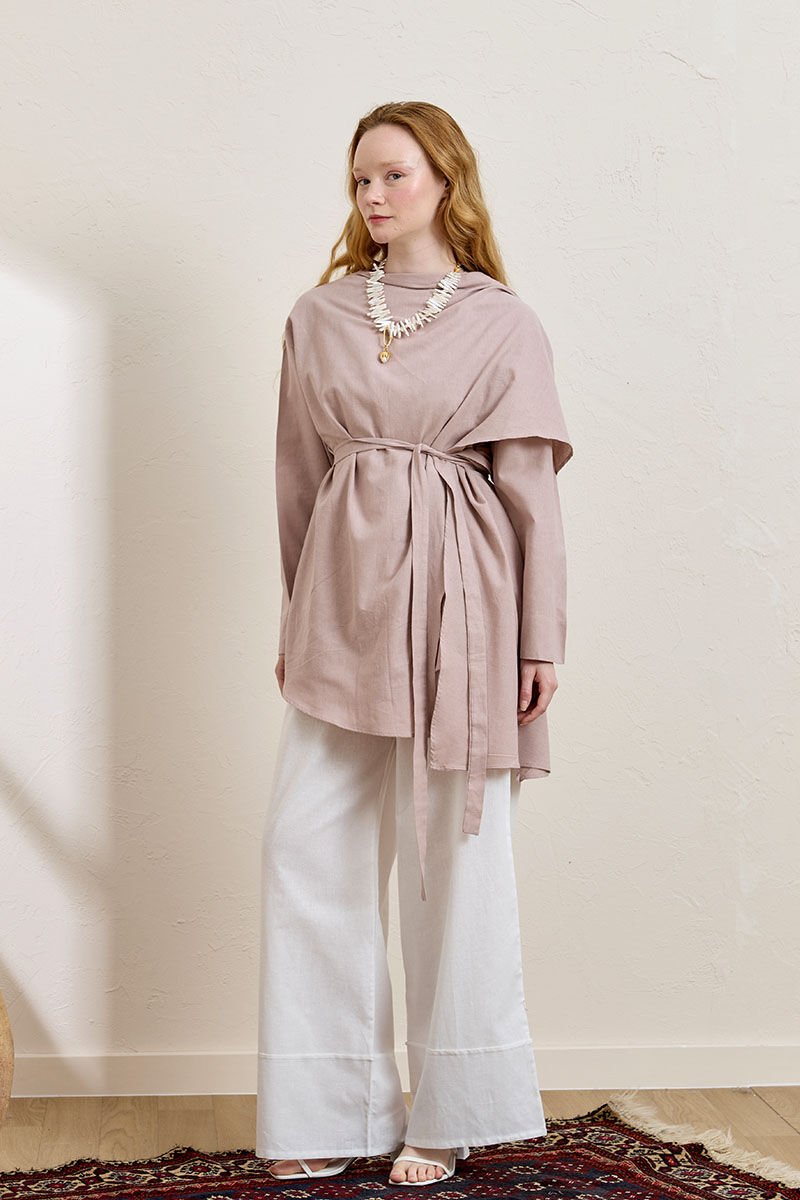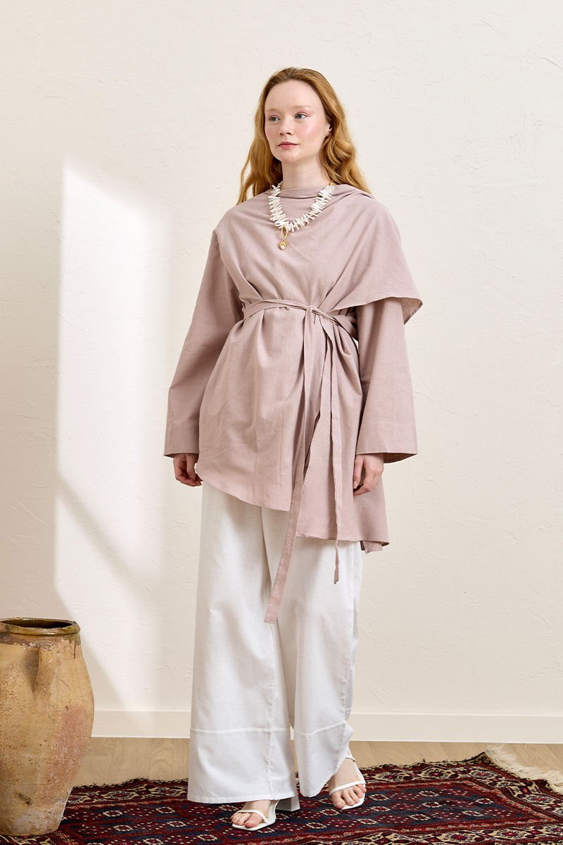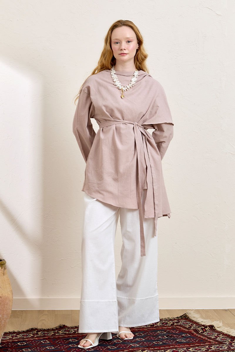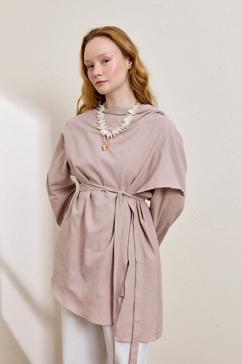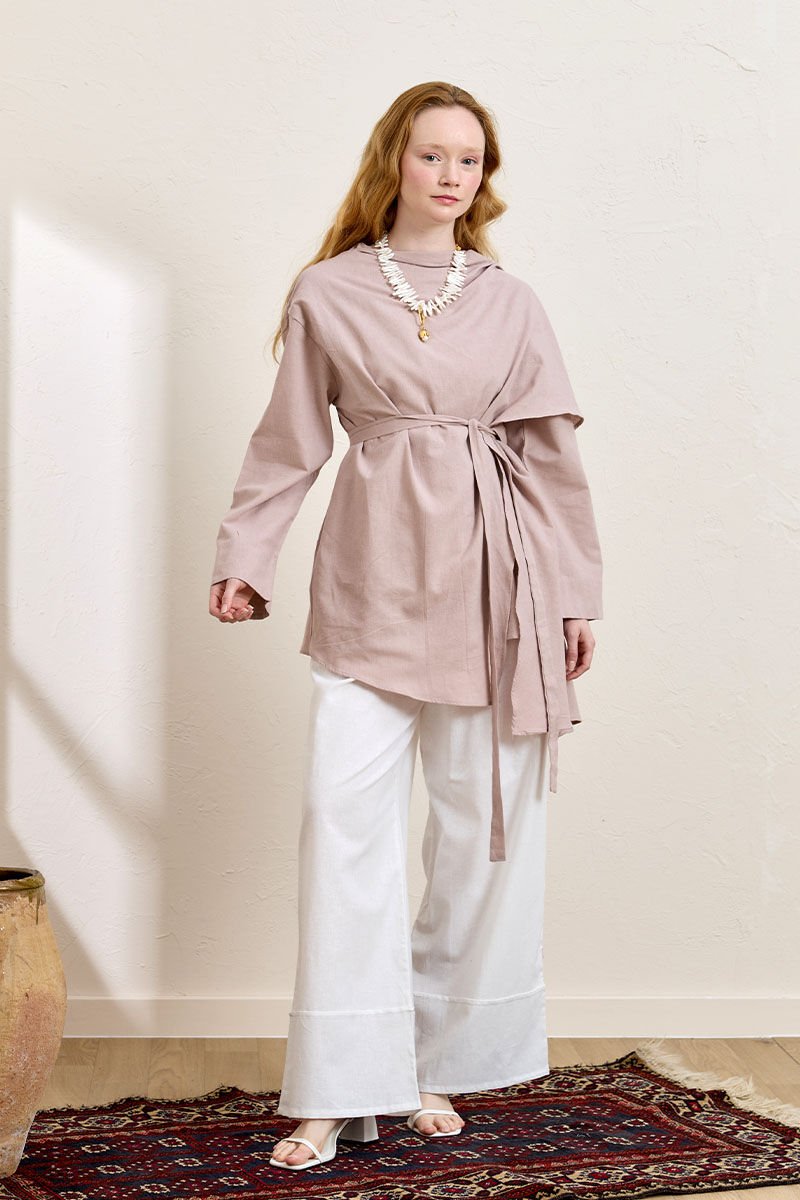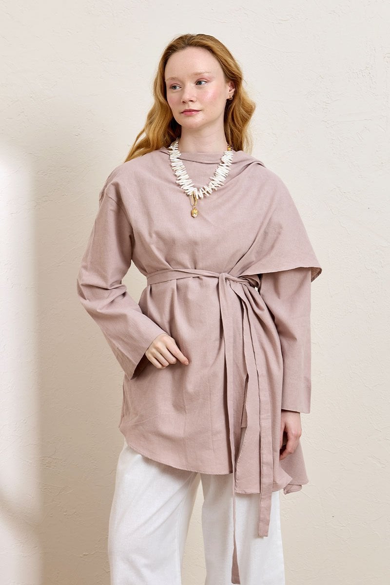 Gül Kurusu Organik Keten Şal Detay Tunik