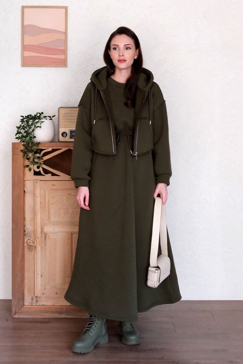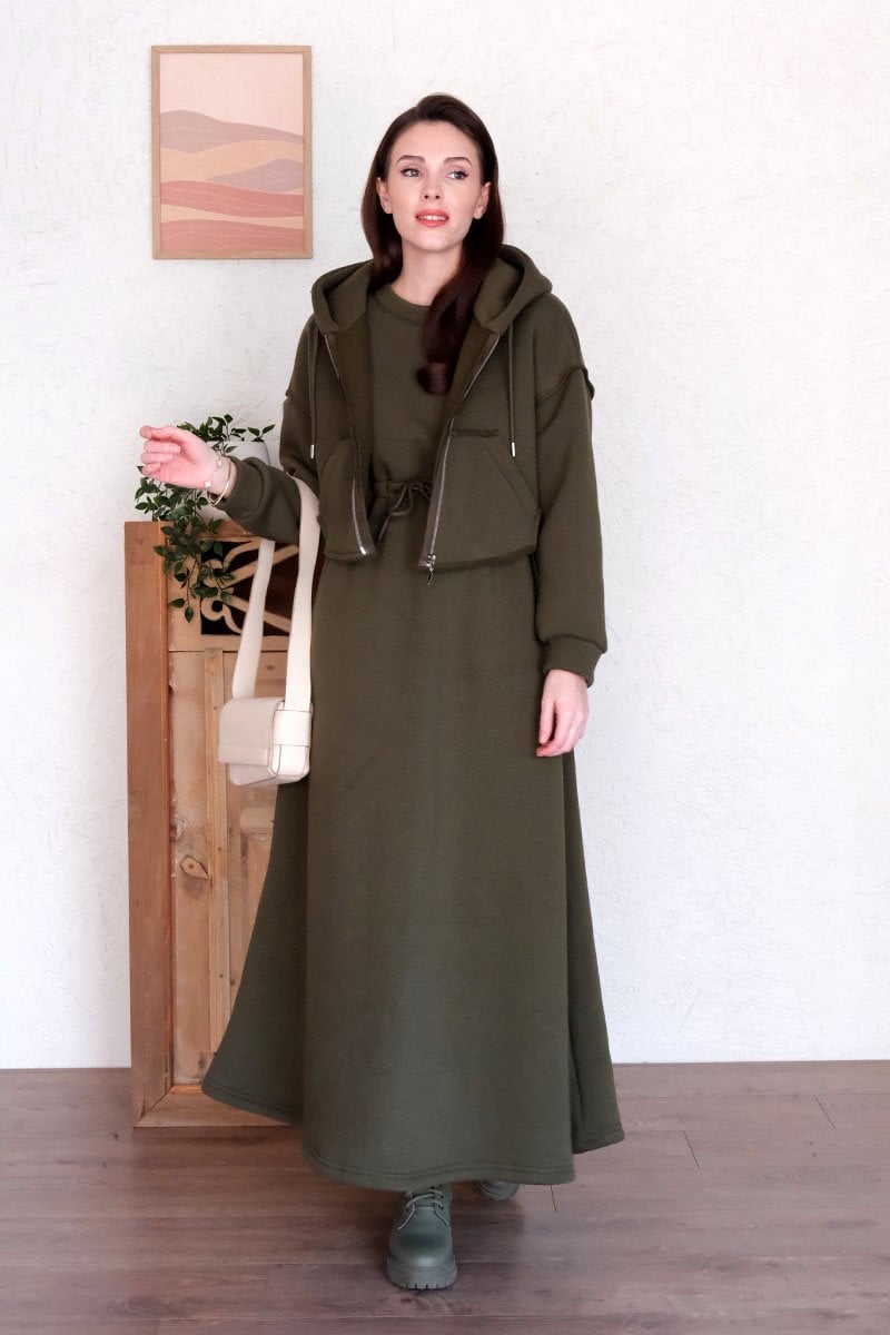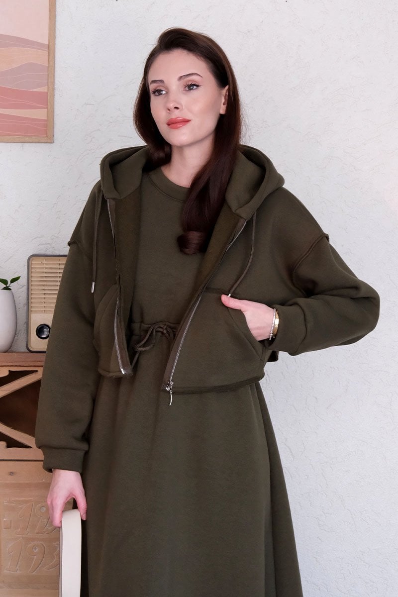 Haki 3 İplik Elbise & Hırka Takım