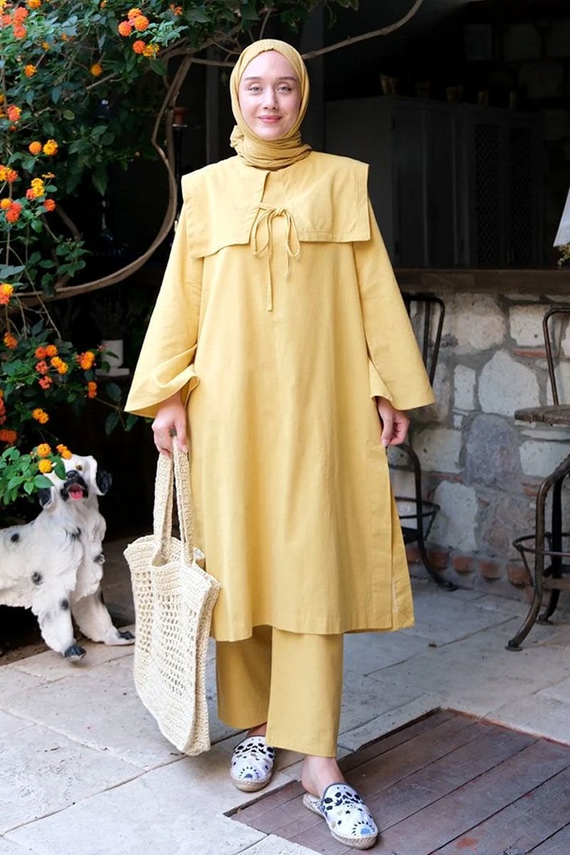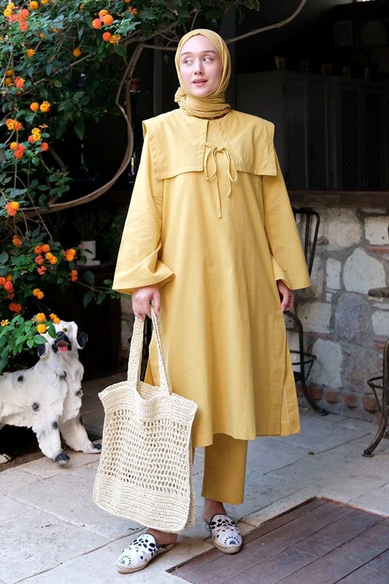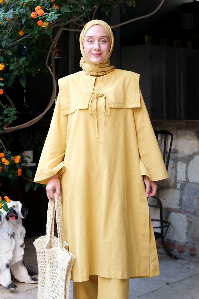 Hardal Organik Keten Bahriye Yaka Tunik