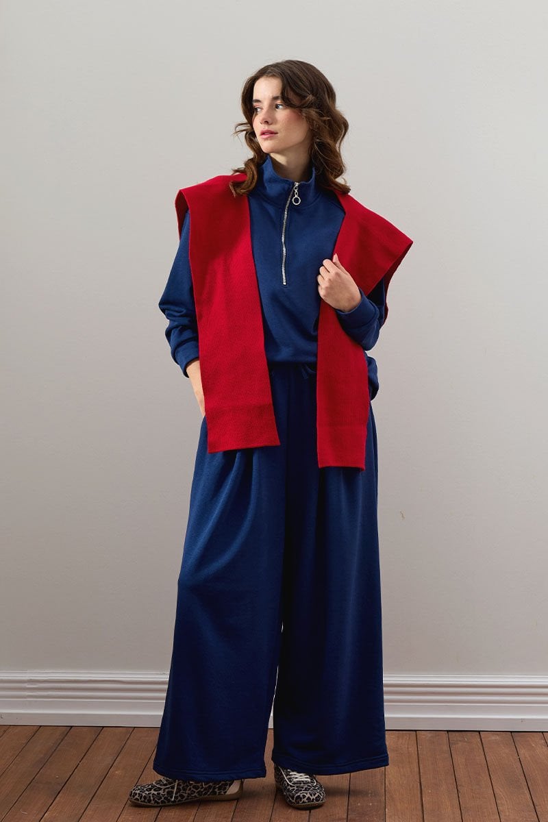 İndigo 3 İplik Yarım Fermuarlı Eşofman Takım