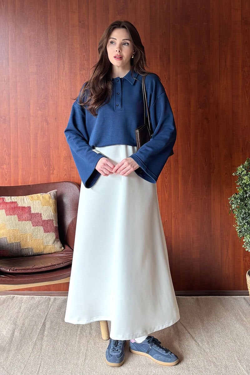 İndigo 3 İplik Polo Yaka Body & Ekru Scuba Etek Takım
