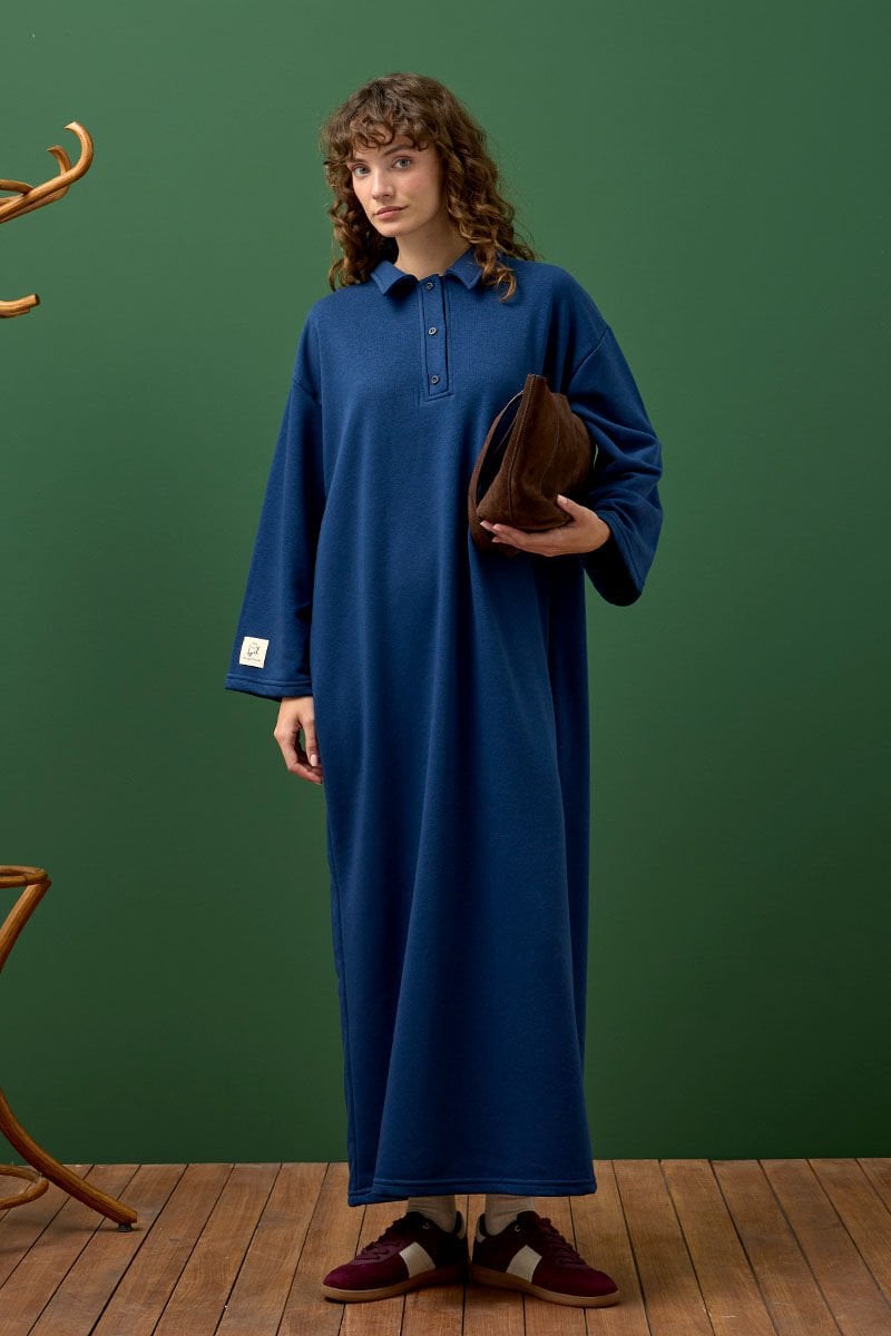 İndigo 3 İplik Polo Yaka Elbise