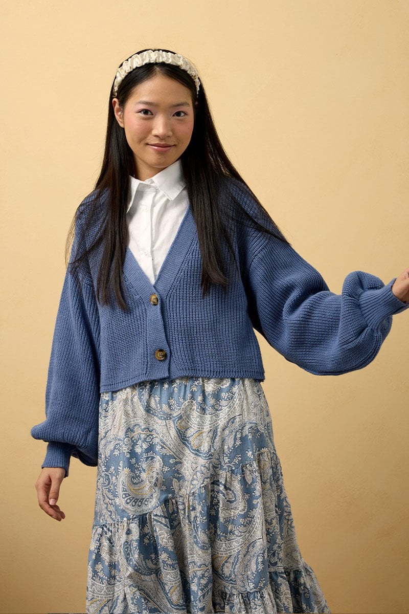 İndigo Balon Kol Triko Hırka