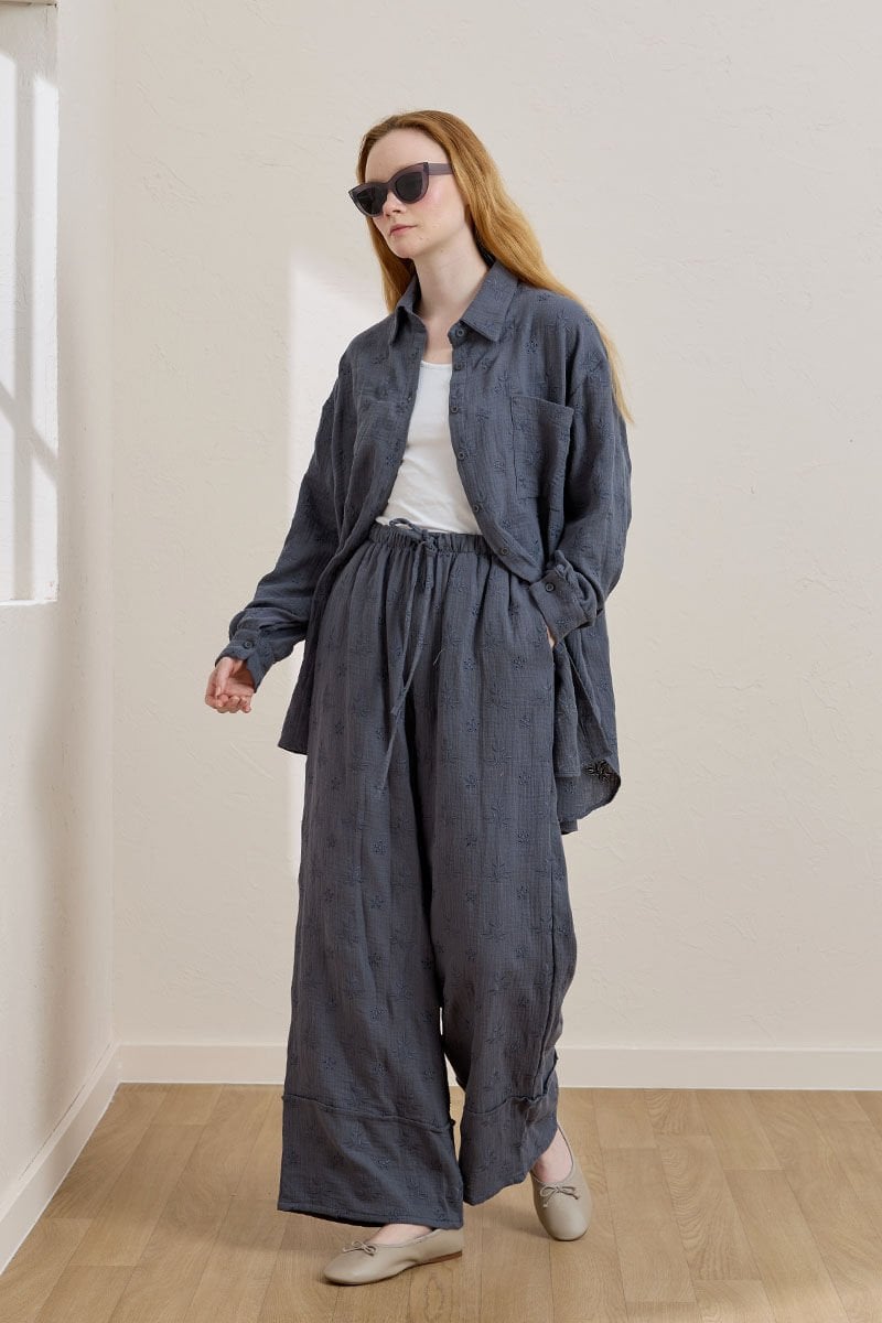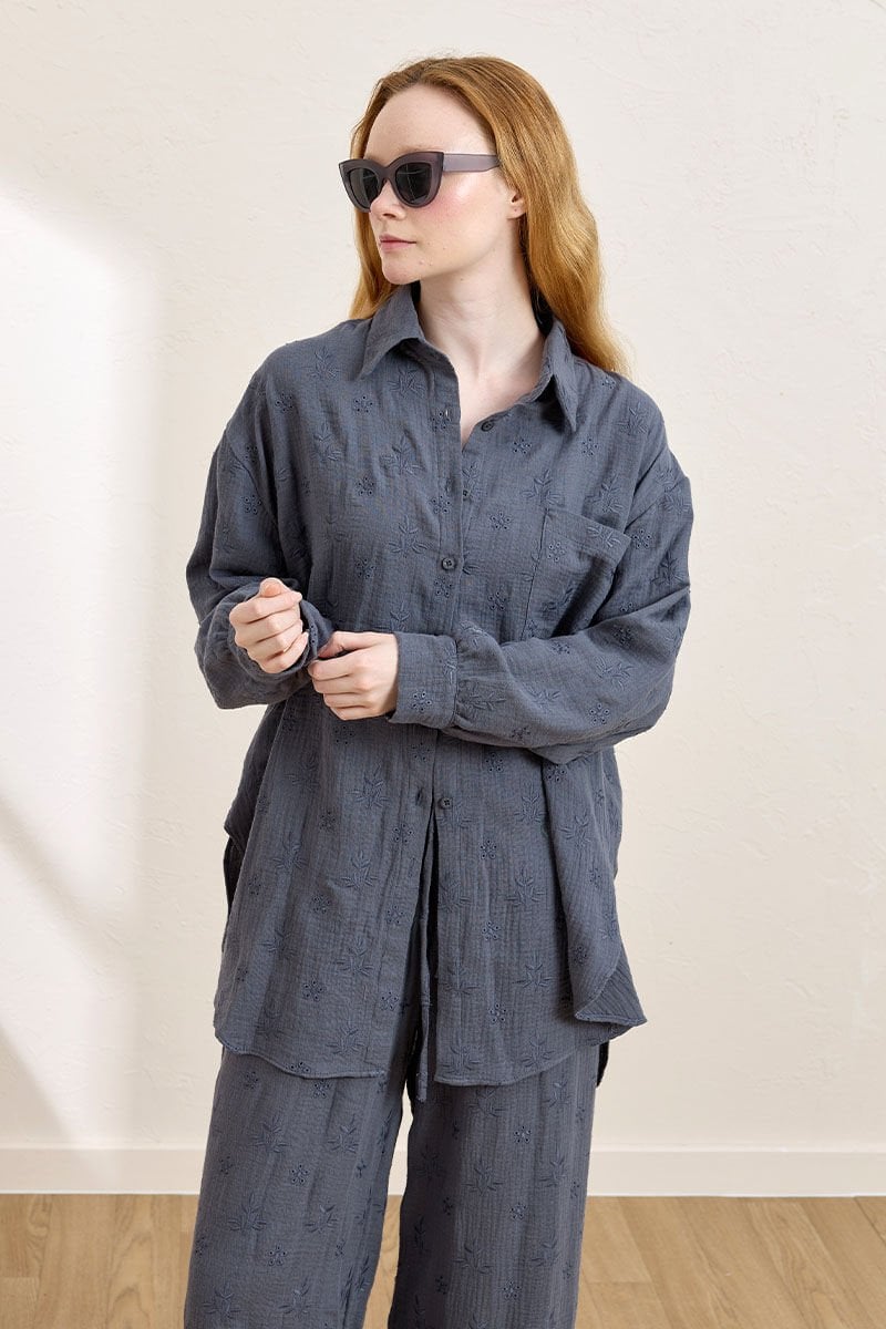 İndigo Fistolu Müslin Gömlek