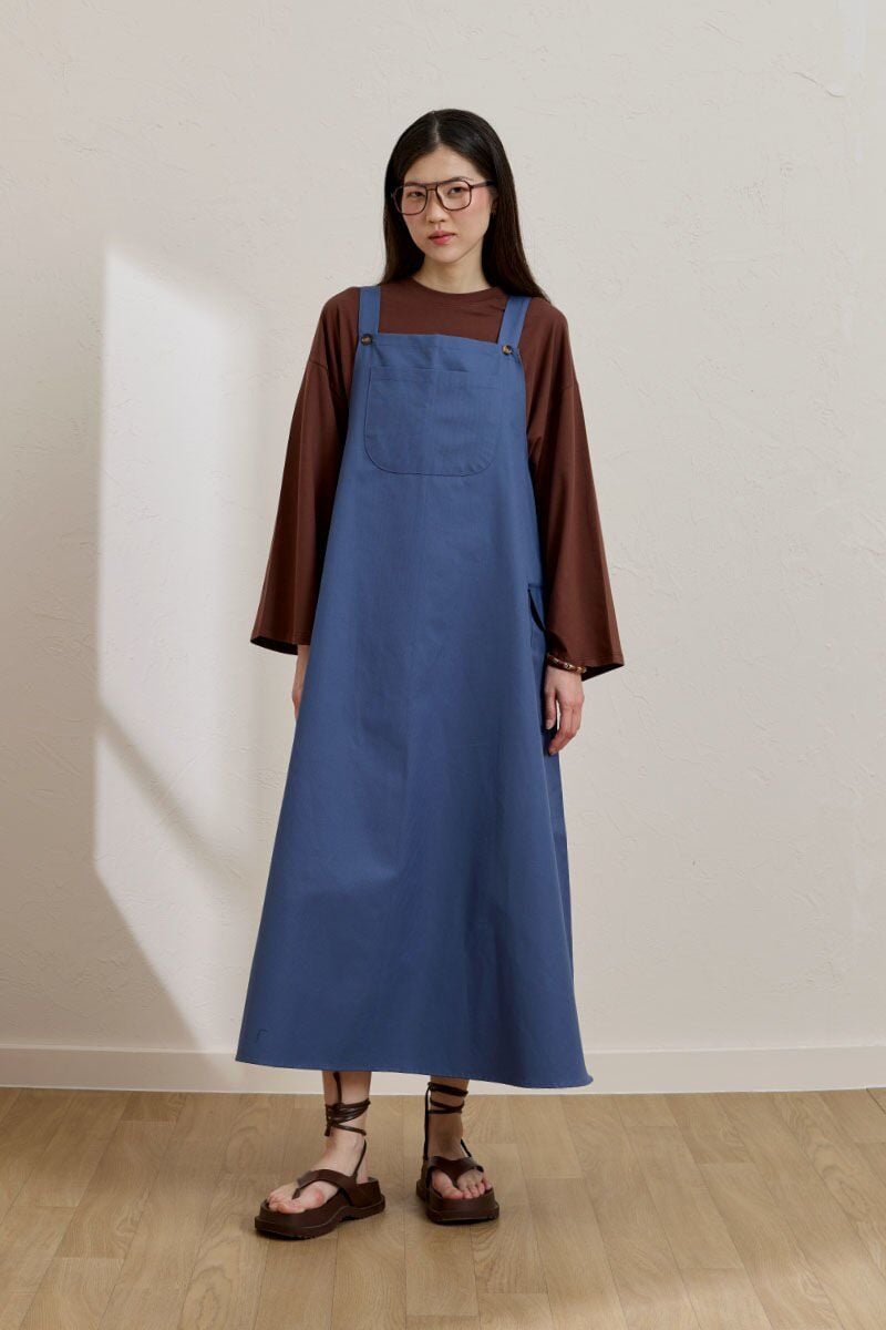 İndigo Keten Etekli Salopet & Acı Kahve Body Takım