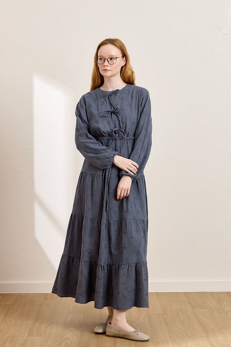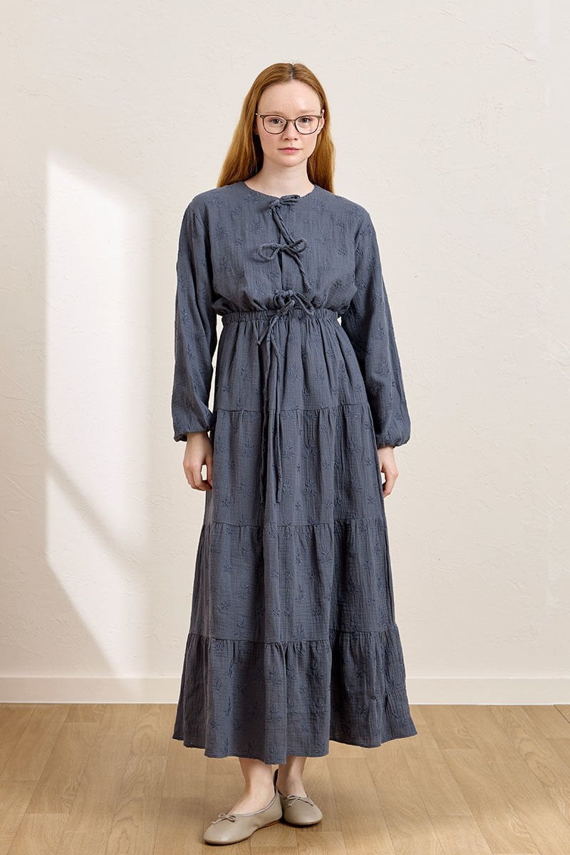 Müslin kumaştan yapılmış etek, zarif nakış işlemeleriyle dikkat çekiyor.