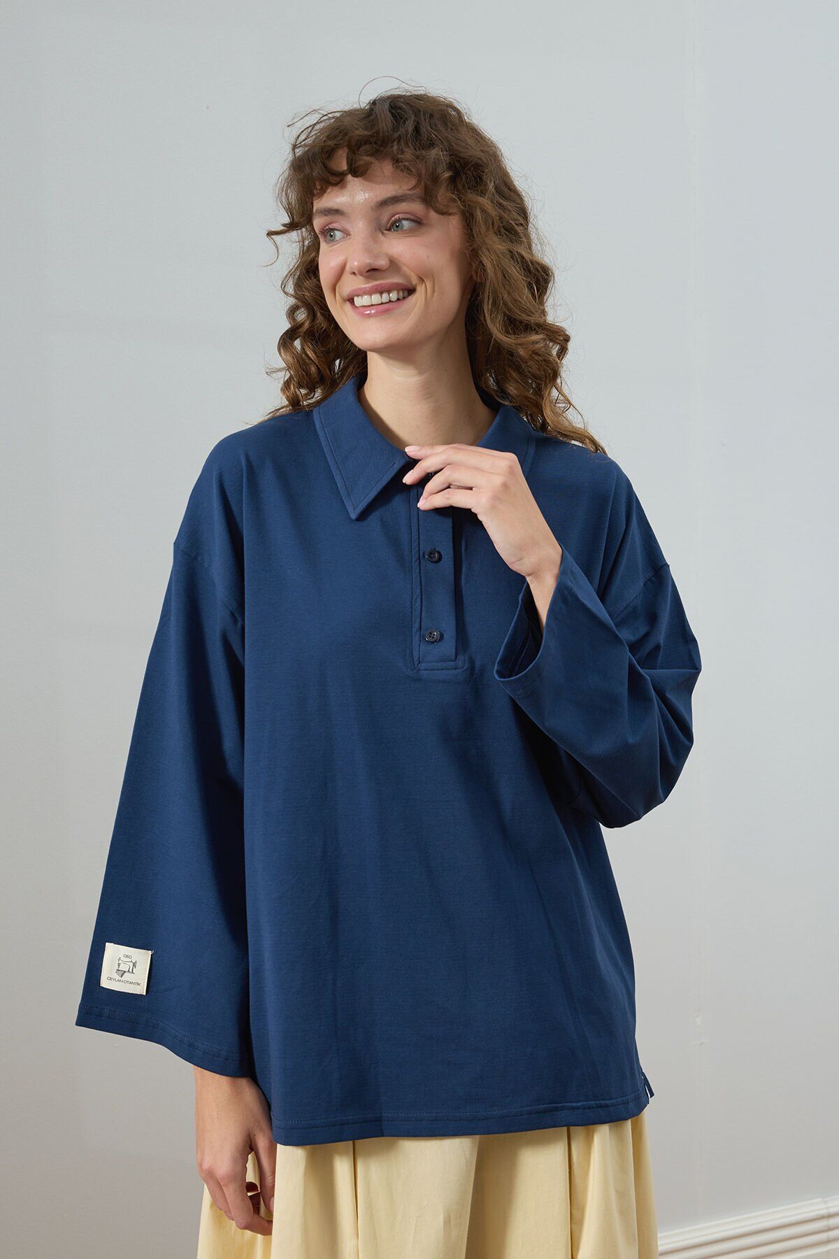 Lacivert Süprem Polo Yaka Body & Tereyağ Sarısı Pile Detay Etek Takım