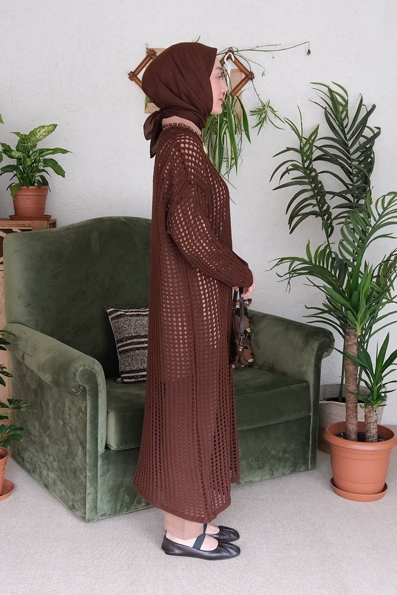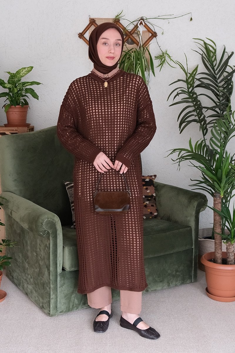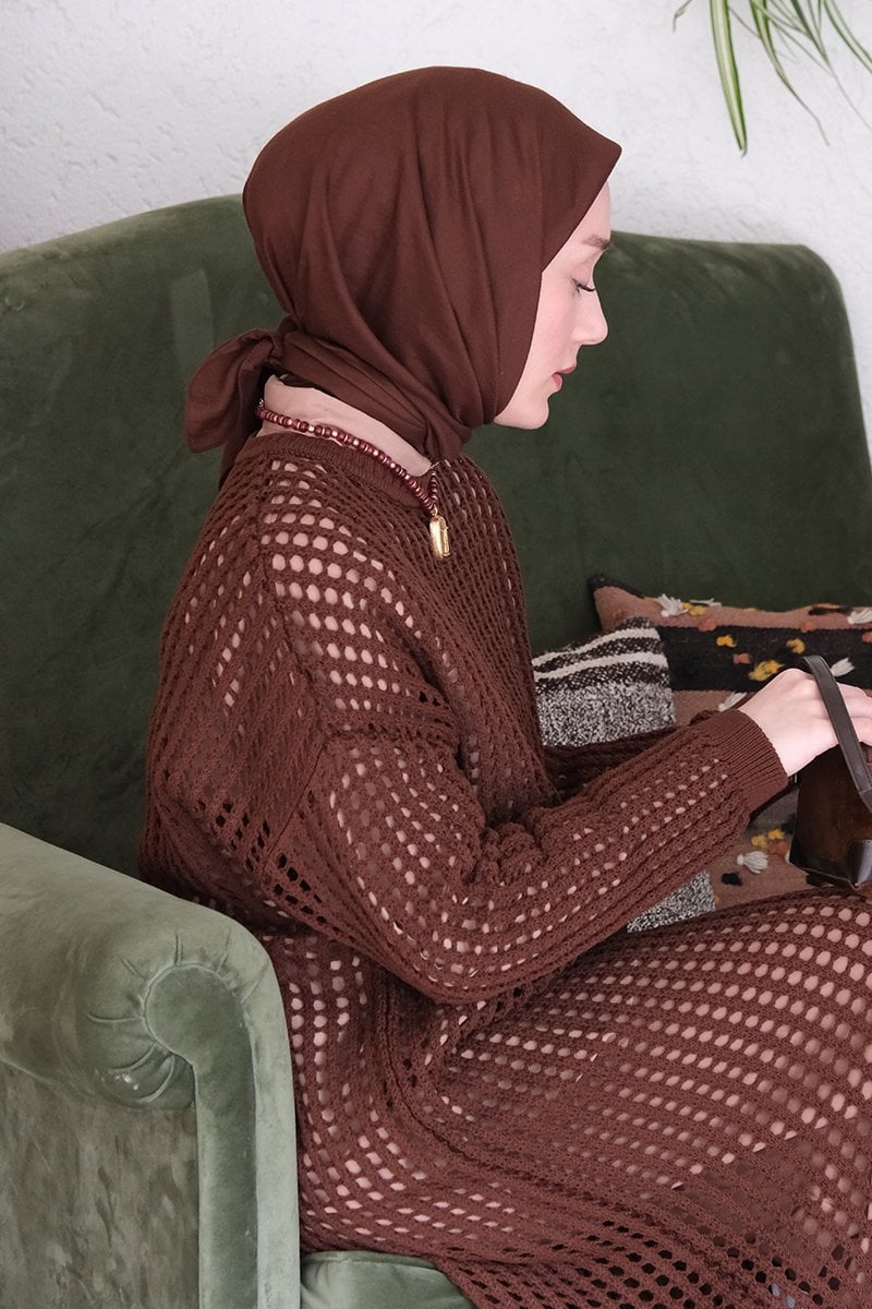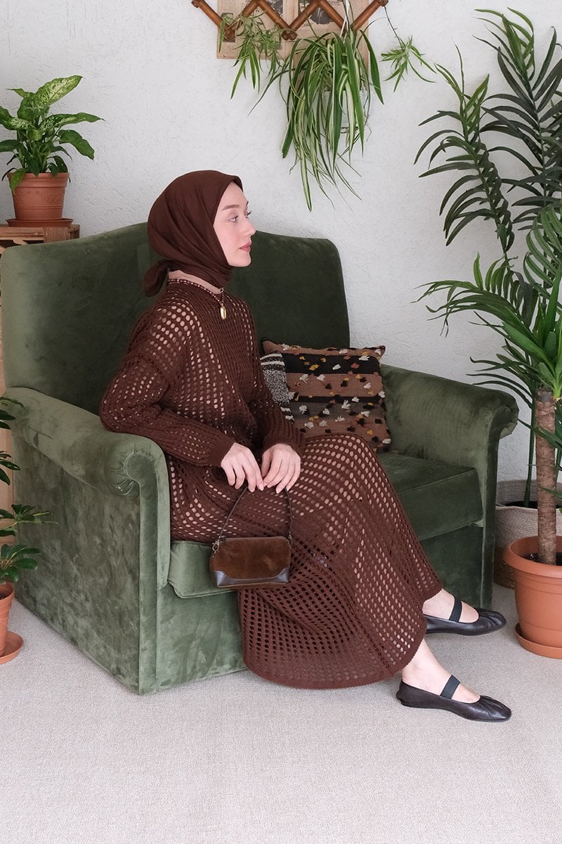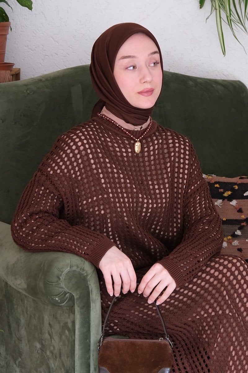 Kahverengi File Triko Elbise