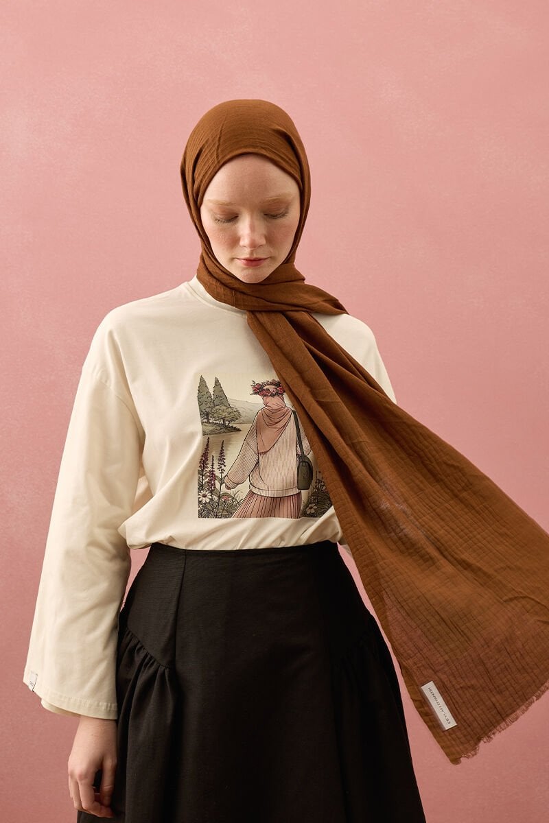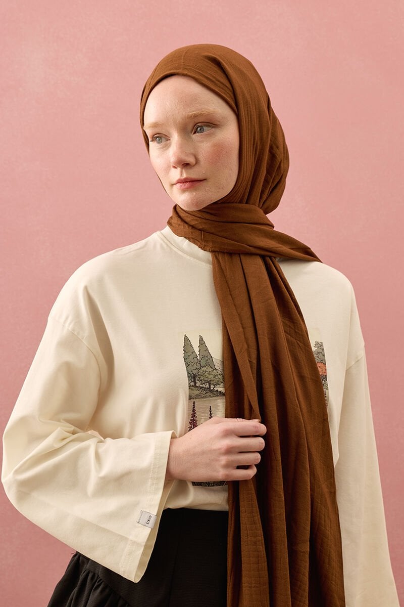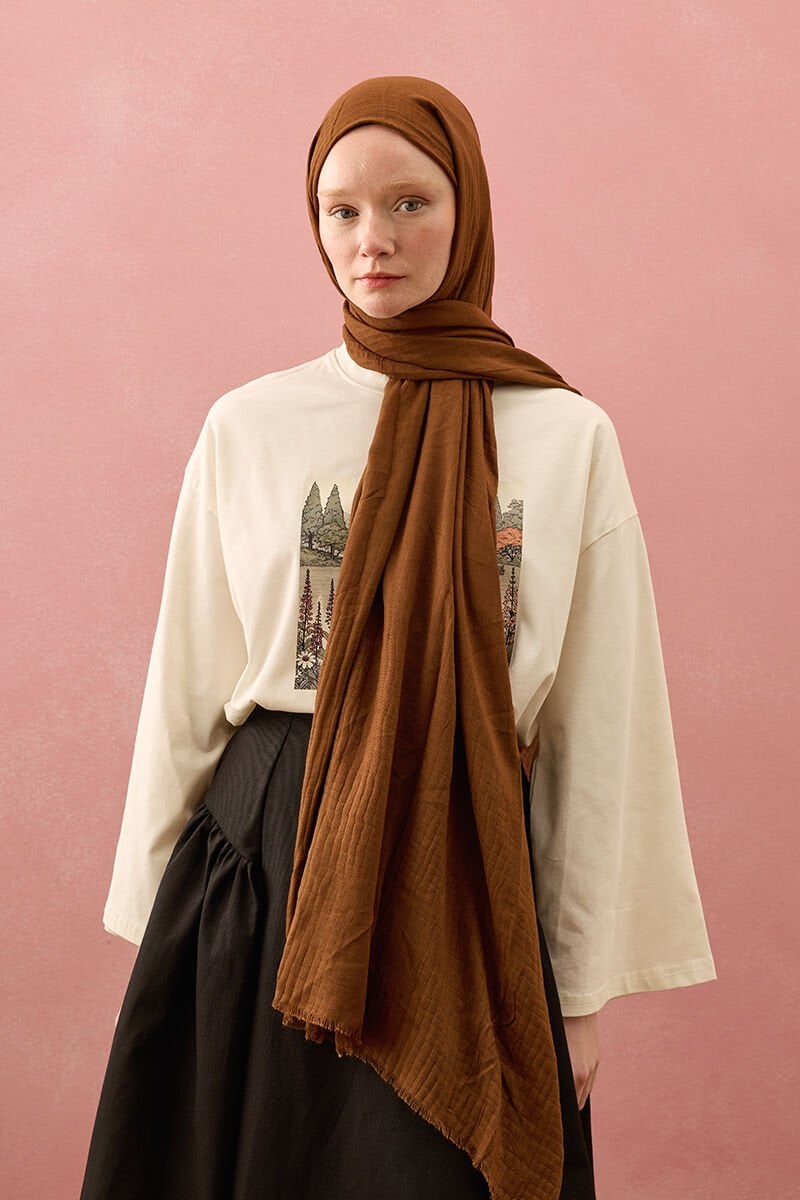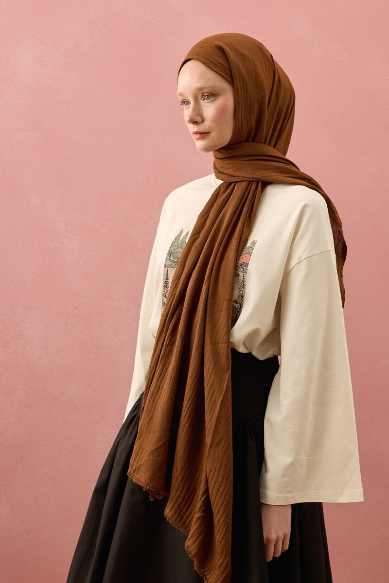 Narin dokusu ve hafif yapısıyla müslin şal, hem şıklığınızı hem konforunuzu tamamlar.