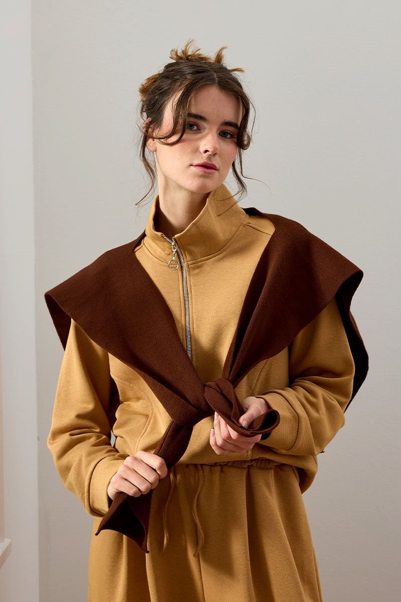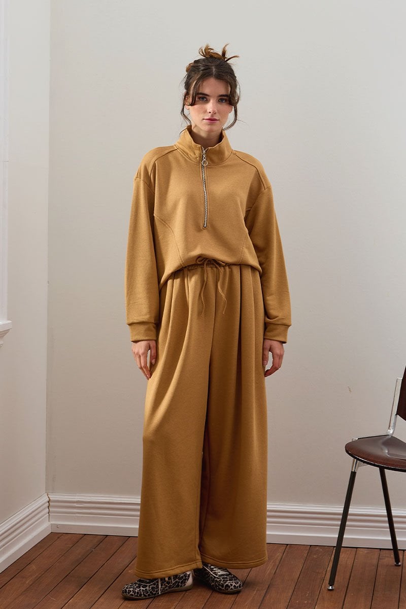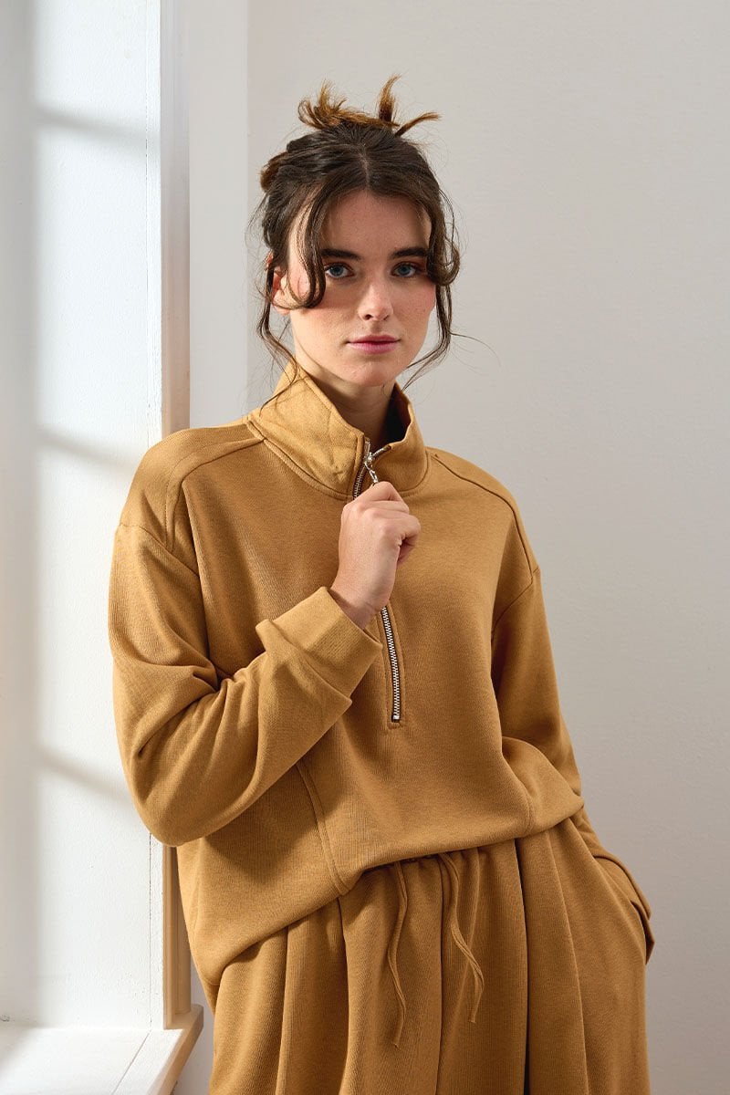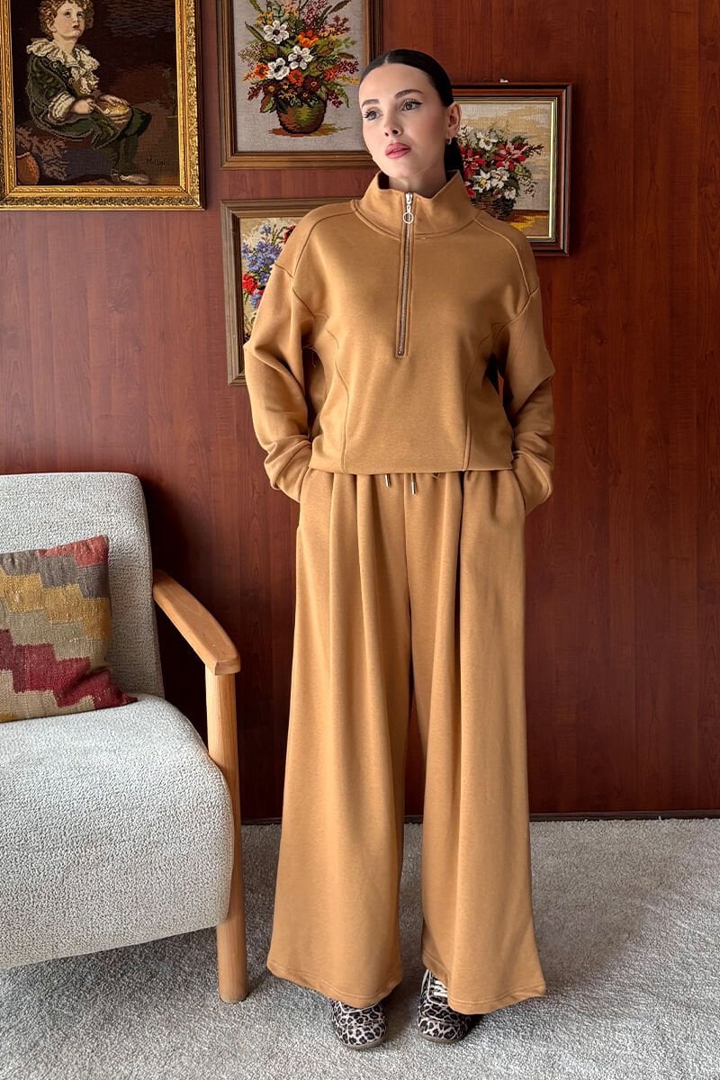 Karamel 3 İplik Yarım Fermuarlı Eşofman Takım