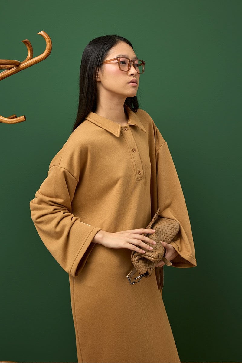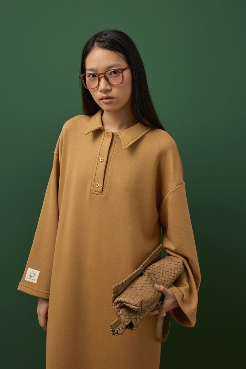 Karamel 3 İplik Polo Yaka Elbise