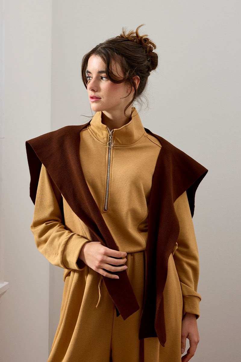 Şık ve konforlu 3 iplik yarım fermuarlı sweat, her mevsime uygun kalınlıkta tasarlandı.
