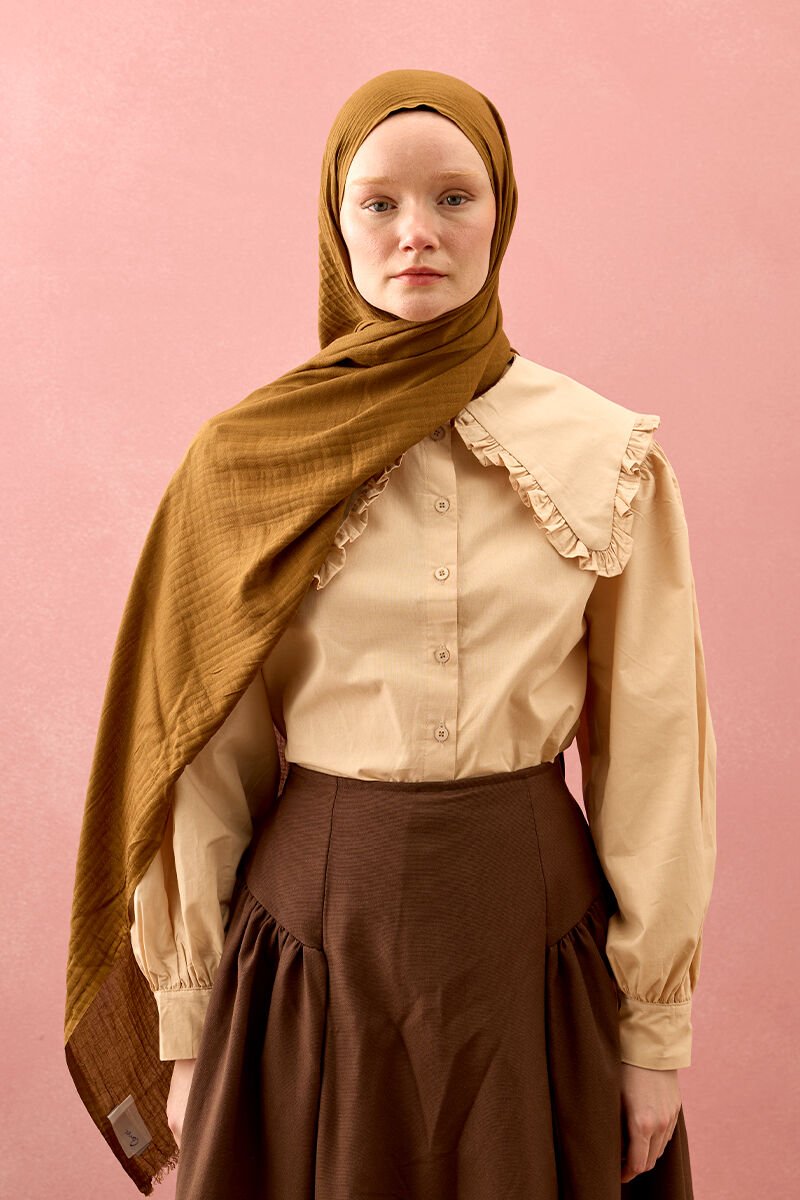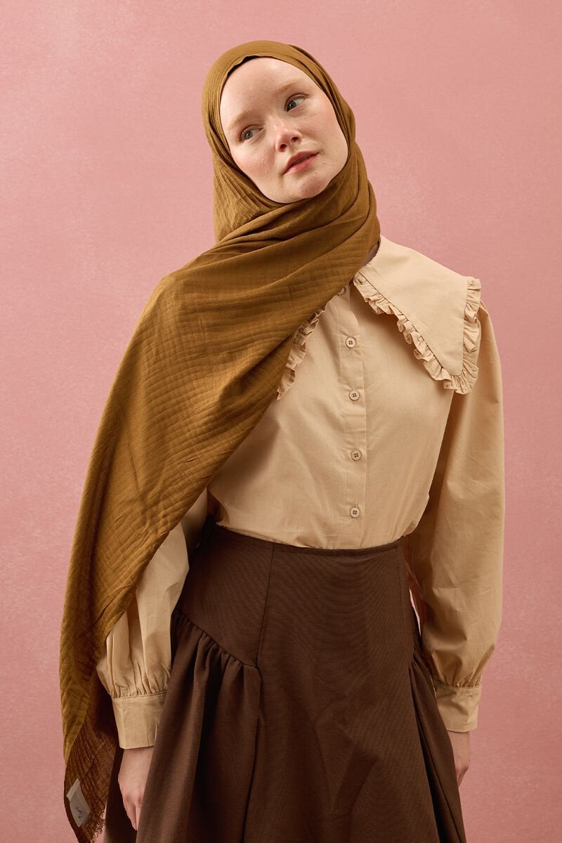 Narin dokusu ve hafif yapısıyla müslin şal, hem şıklığınızı hem konforunuzu tamamlar.