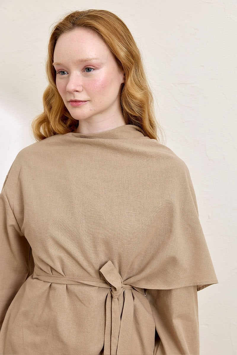 Bu muhteşem organik keten şal detaylı tunik, şıklık ve rahatlığı bir arada sunuyor.