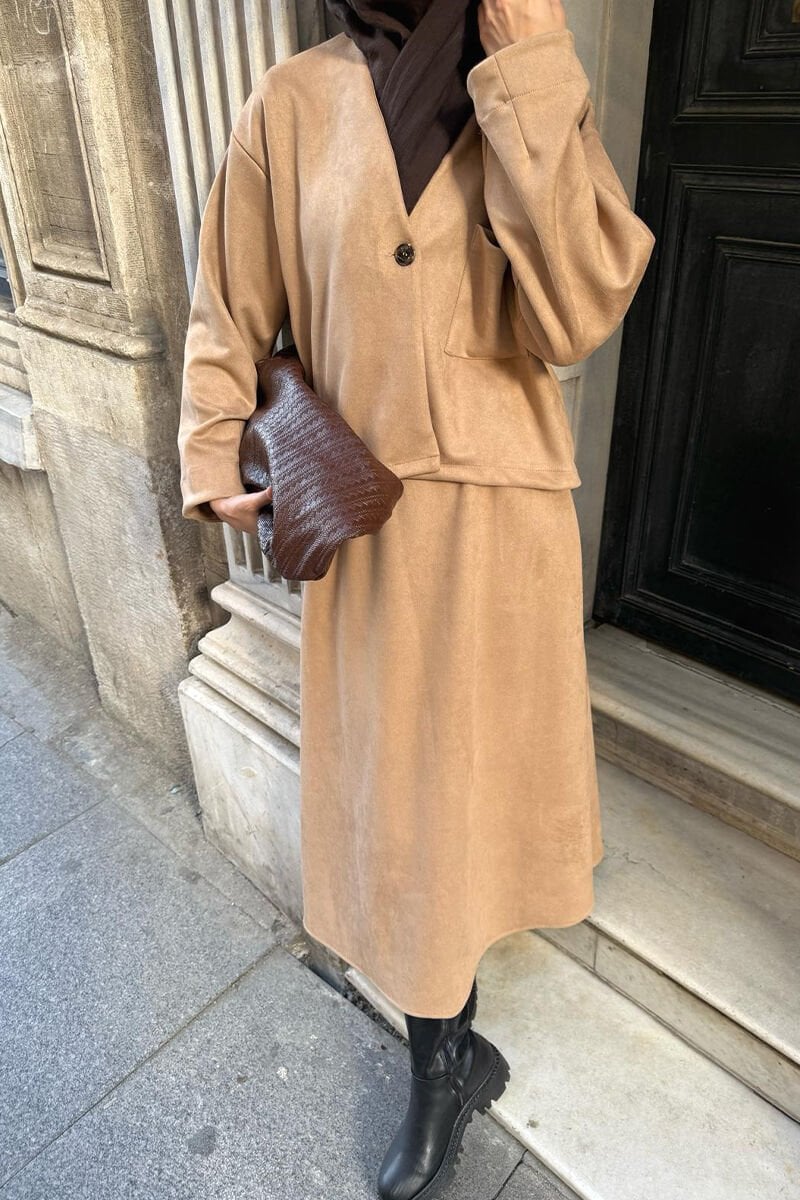 Karamel Süet Kloş Etek - Ceket Takım Ceylan Otantik'in seçimi Karamel Süet Kloş Etek - Ceket Takım. Vintage ve tesettür kadın giyim şıklığını uygun fiyatlı parçalarla keşfedin! CEO000001055 Karamel Süet Kloş Etek - Ceket Takım