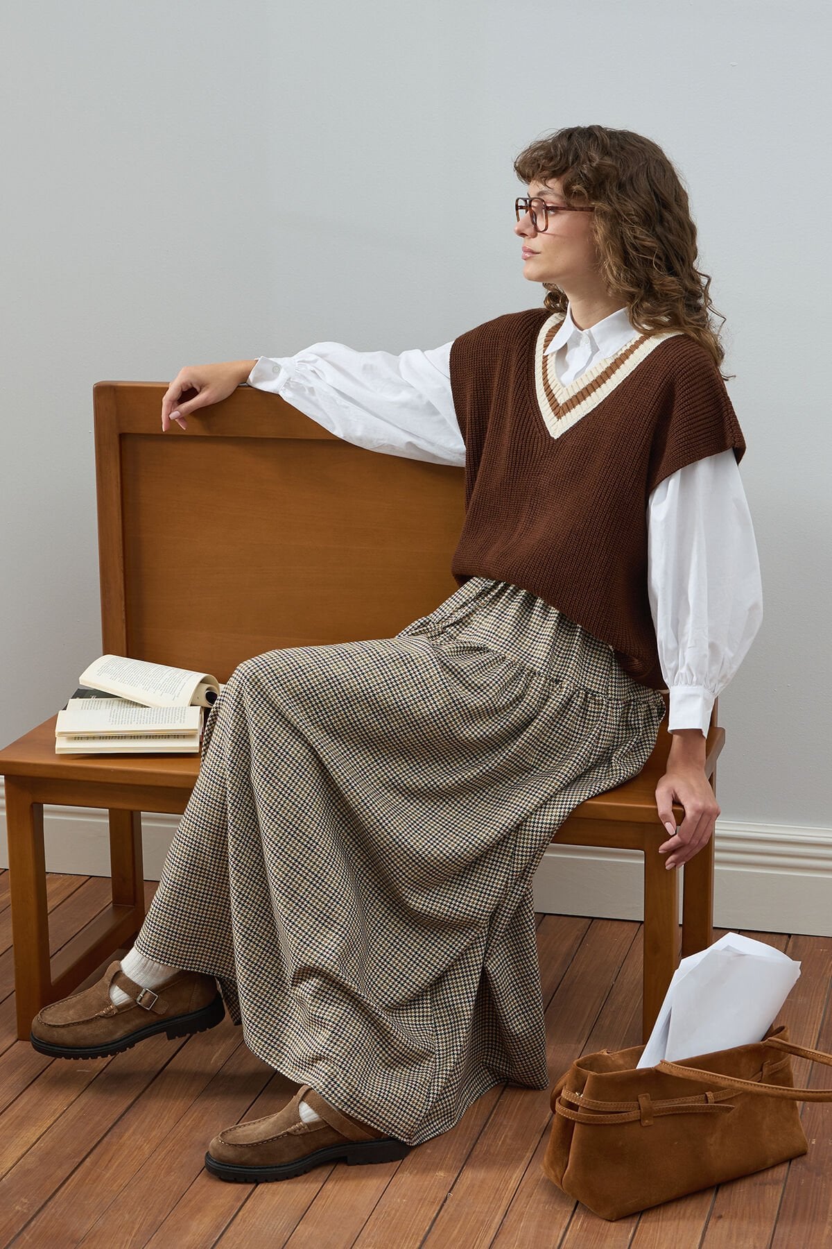 Bu muhteşem kaz ayağı desenli etek, şıklık ve rahatlık arayan kadınlar için ideal bir seçenektir.