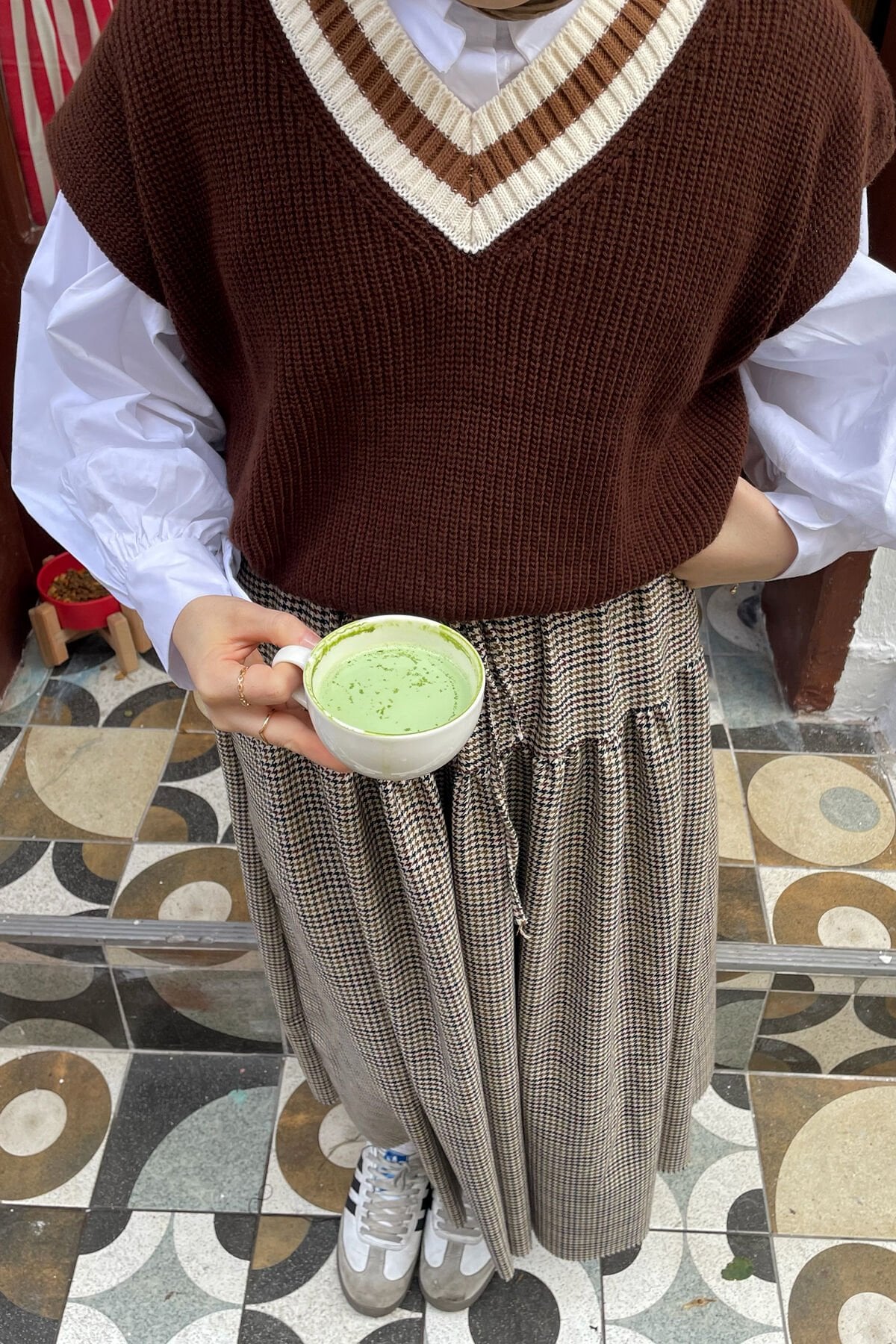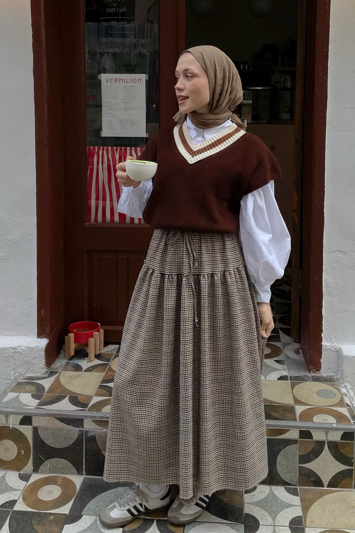 Bu muhteşem kaz ayağı desenli etek, şıklık ve rahatlık arayan kadınlar için ideal bir seçenektir.