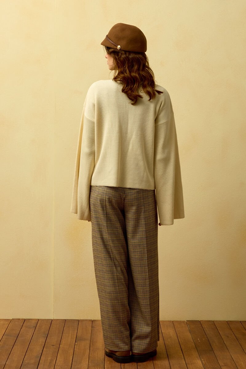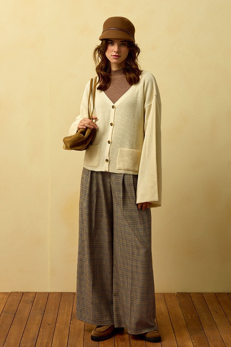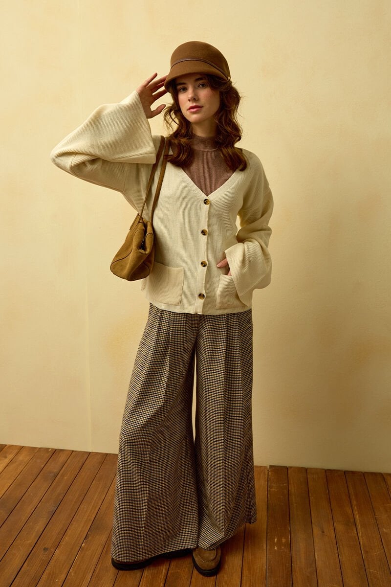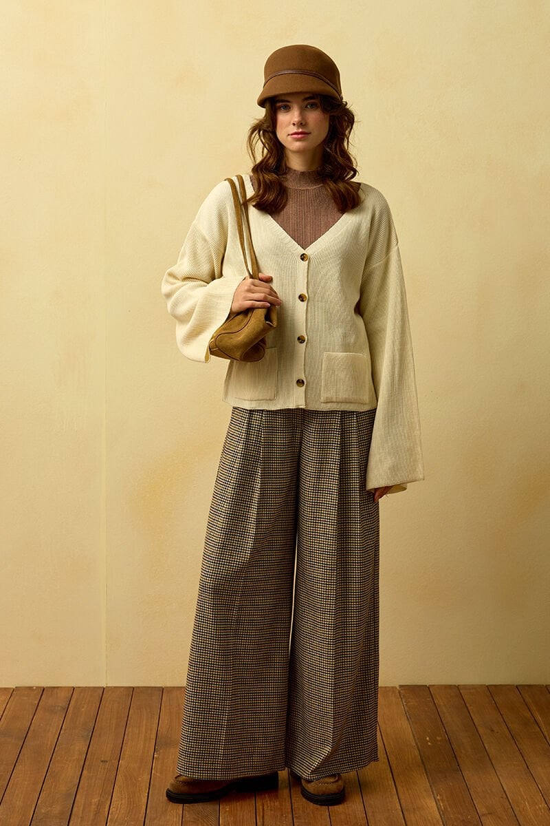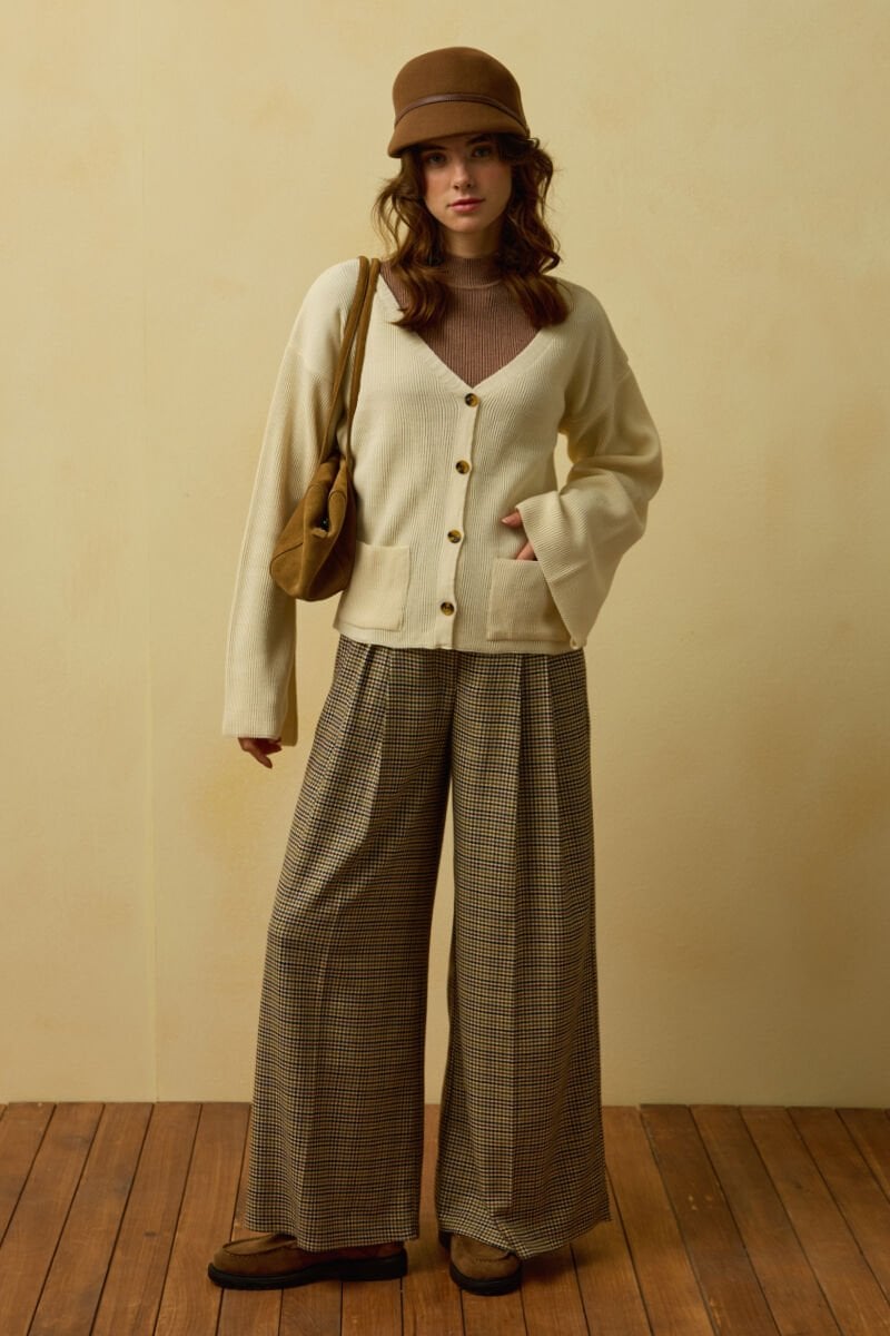 Kaz Ayağı Desenli Pile Detay Palazzo Pantolon