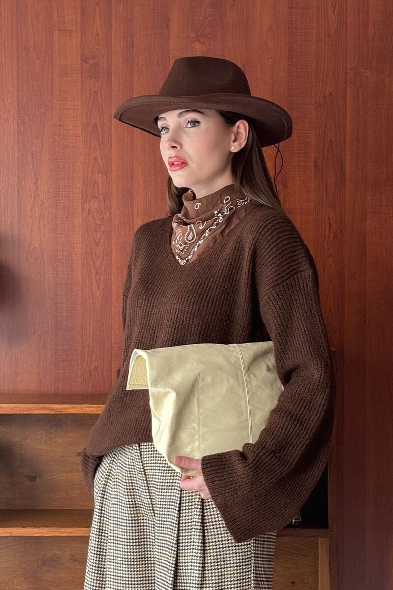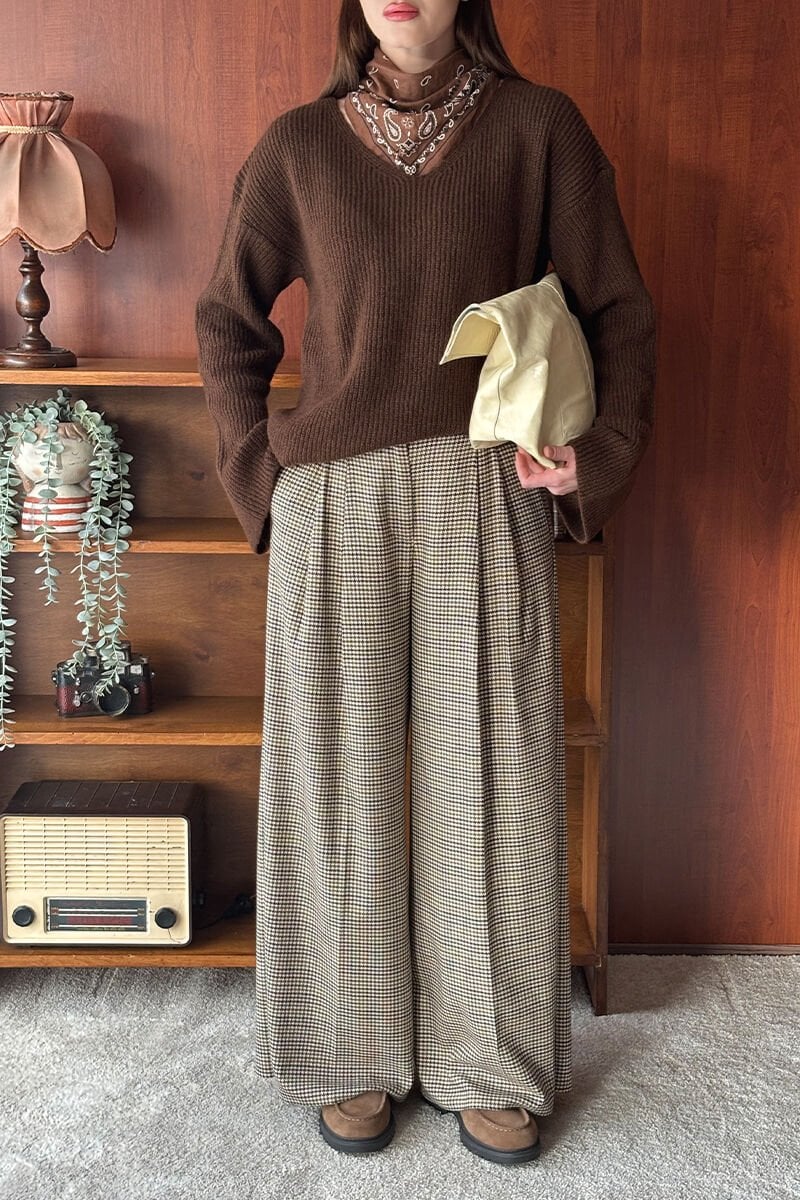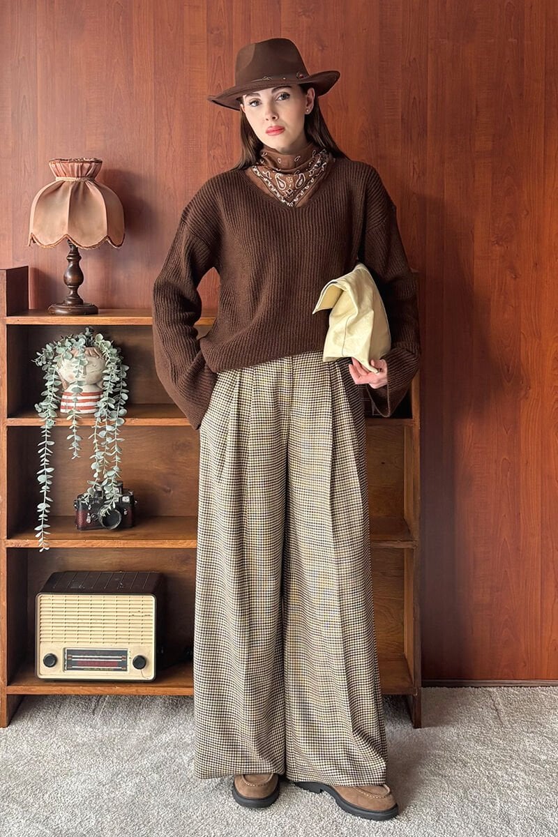 Kaz Ayağı Desenli Pile Detay Palazzo Pantolon